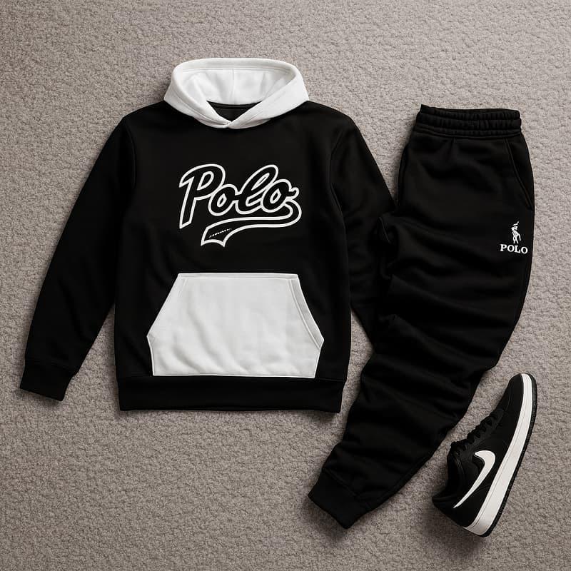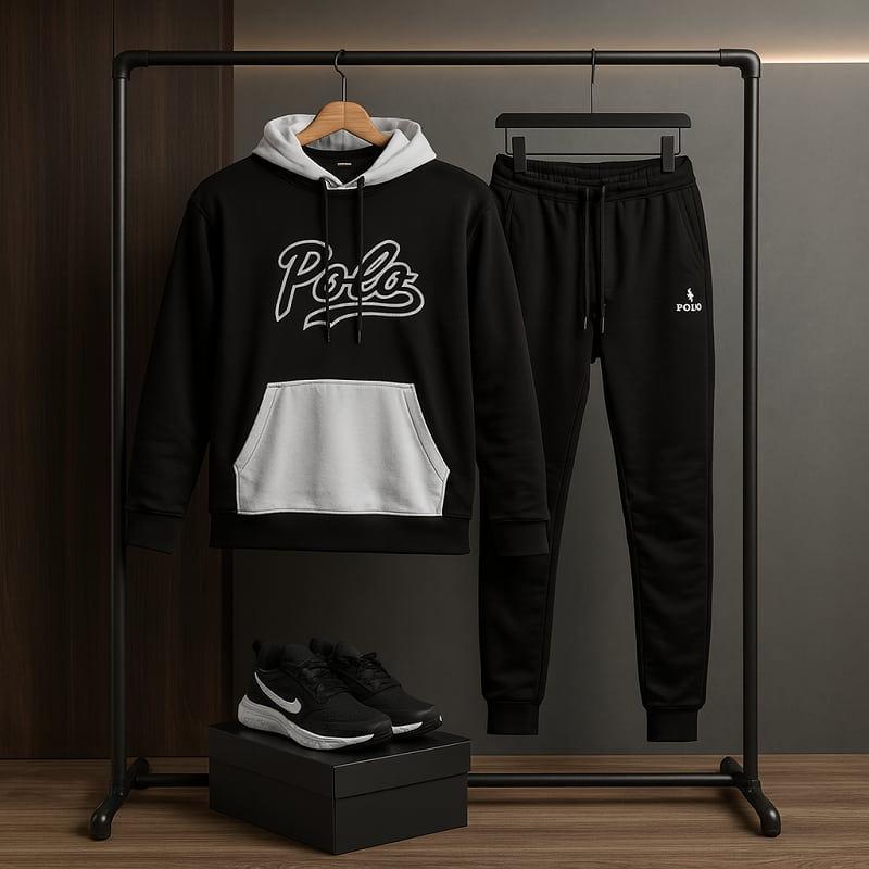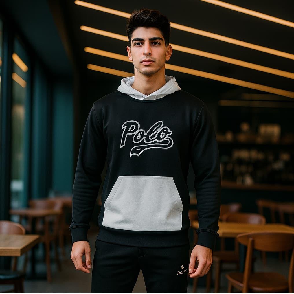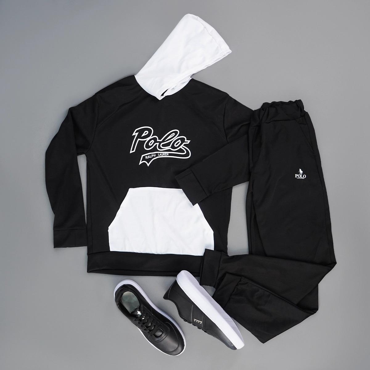 ست هودی شلوارpolo مردانه مدل Ervin جنس : پنبه پلی استر قد هودی : 71 سانتیمتر عرض شانه : 51 سانتیمتر عرض سینه : 53 سانتیمتر قد آستین : 62 سانتیمتر قد شلوار:102 سانتیمتر فاق شلوار:30 سانتیمتر رنگبندی : مشکی هودی داری جیب و کلاه می باشد. فری سایز(مناسب برای سایزهای لارج و ایکس لارج)