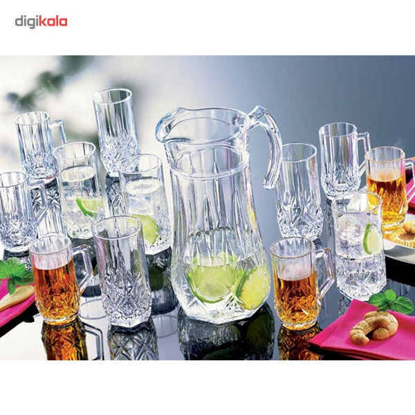اگر به انواع میز غذا توجع کنیم خواهیم دید که انواع پارچ و لیوان همواره یکی از پر کاربردترین وسایل سرو نوشیدنیاند. معمولا برای نگهداری آب خصوصا در فصل گرما آن را در پارچ نگهداری میکنند. در واقع پارچ رایجترین ظرف نگهداری آب می باشد. مصرف شش لیوان آب بصورت روزانه می تواند تضمینی برای سلامتی دائم شما باشد. این موضوع همیشه توسط پزشکان و متخصصان سلامتی مورد تاکید قرار می گیرد. حال اگر هر فرد بتواند روزانه چیزی در حدود همین مقدر آب مصرف کند،قدم بزرگی در زندگی سالمتر برداشته است. تنوع انواع پارچ بسیار زیاد است. برخی از پارچ ها از چینی ساخته شده اند و برخی از انواع سرامیک یا بلور. بسیاری از افراد ترجیح میدهند از انواع پارچ بلوری استفاده کنند .انواع پارچ بلوری برای نگهداری انواع نوشیدنی موجود است. فرم و ظاهر و متعاقبا کیفیت بالای این گونه ظروف می تواند معیار خوبی برای انتخاب در بین پارچ های متفاوت باشد. ست پارچ و لیوان لیوان مدل Brighton یک پارچ شیشه ای زیبا می باشد. جنس این تنگ از شیشه مرغوب میباشد.. لازم به توضیح است که این پارچ قابلیت شستشو بصورت دستی دارد و همچنین می توان برای شست و شوی آن از ماشین ظرفشویی استفاده کرد.در ضمن این پارچ درای شش لیوان جدا گانه و همجس خود می باشد. در واقع این لیوان ها هم از جنس شیشه شفاف ساخته شده اند . هر یک از لیوان ها حدود 400 میلی لیتر گنجایش دارند که گنجایش بسیار مناسبی برای یک لیوان محسوب می شود. شرکت لومینارک یکی از بزرگترین شرکت های خصوصی در دنیا می باشد که در بسیاری از کشور های جهان بیش از سی صد فروشگاه دارد.این برند از قدیم تا به امروز همیشه در ایران طرفداران پروپا قرصی دارد و از این رو نامی آشنا در ایران می باشد. مبدا این برند کشور فرانسه می باشد . فرانسه هم همیشه یکی از مراکز مهم و بزرگ ظروف بلور و کریستال بوده است و از این رو کیفیت محصولاتی این برند فرانسوی نیز بسیار خوب می باشد.