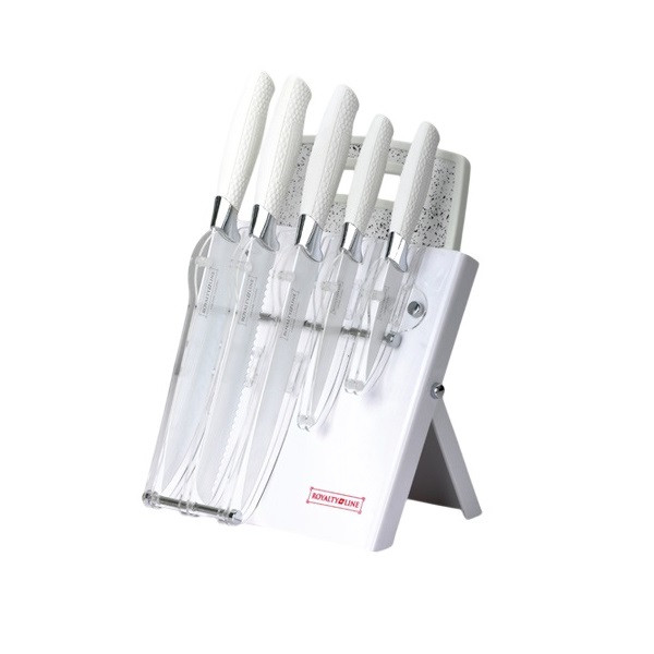 ست چاقو آشپزخانه 5 پارچه رویالیتی لاین مدل RL-7ST-W به همراه استند