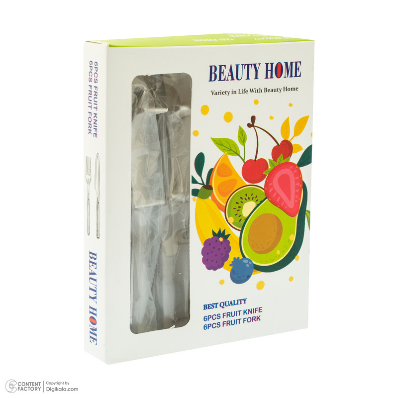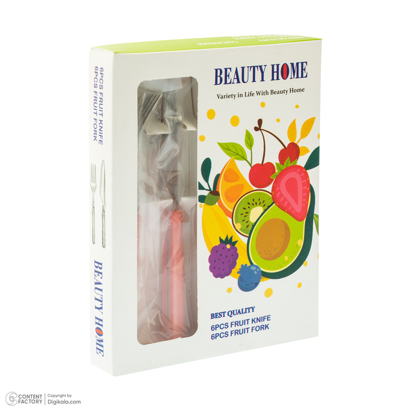 کارد و چنگال میوه خوری " BEAUTY HOME " با طراحی روز اروپایی دارای کیفیت بالای جنس ، طراحی زیبا ، استحکام محصول و رنگ متنوع خود برای سرو و پذیرایی میوه و کیک بسیارخوشدست و مناسب و شیک بوده و دارای تیغه بسیار تیز برای برش راحت و پوست کندن میباشد.