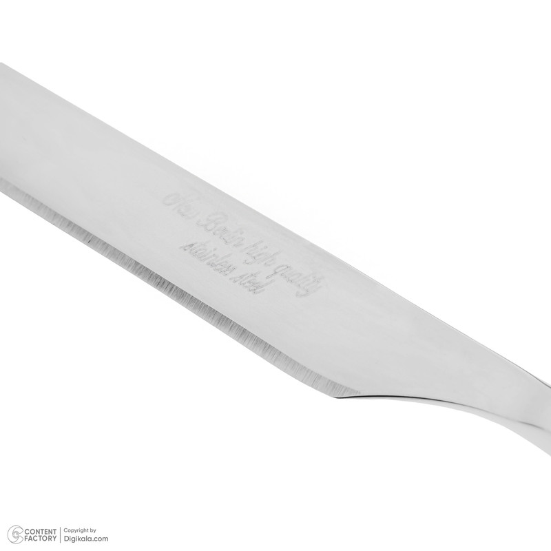 سایر توضیحات6 عدد کارد میوه خوری به ابعاد 18.5x1x0.35 سانتی متر و وزن 50 گرم - 6 عدد چنگال میوه خوری به ابعاد 14.5x2x0.35 سانتی متر و وزن 20 گرم - استیل 18/10 ضدزنگ با ضخامت 3/5 میلی متر