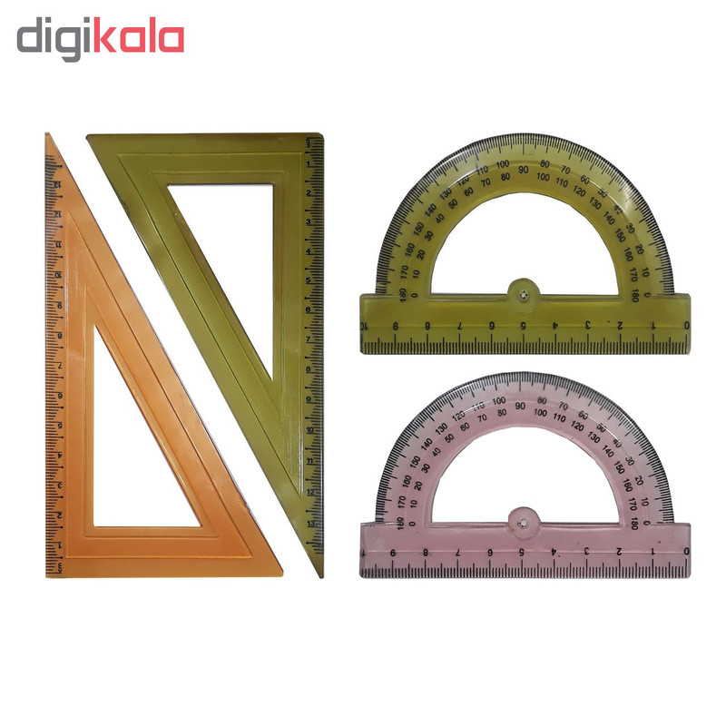 سایر توضیحات | مجموعه 4 عددی شامل 2 عدد نقاله و 2 عدد گونیا جنس محصول : ژله ای انعطاف پذیر رنگ گونیا:سبز کم رنگ و نارنجی رنگ نقاله ها : سبز کم رنگ و صورتی قطر نقاله : 10 سانتی متر ابعاد گونیا : 15*7 سانتی متر |
