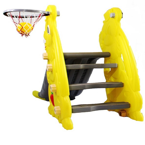 فنی – طول سر و پله های سرسره نیز دارای ایمنی هستند. همچنین این مجموعه دارای سبد بسکتبال برای انجام بازی های توپی است.