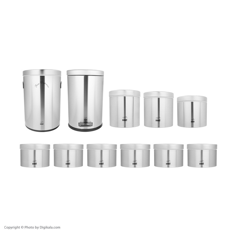 سایر توضیحات | - دارای ظرف برنج با ابعاد: 41 × 27.5 × 27.5 سانتیمتر و وزن: 1940 گرم - دارای سطل زباله پدالی با ابعاد: 40.5 × 27.5 × 34.5 سانتیمتر و وزن: 2815 گرم - دارای 6 عدد بانکه سایز 1 با ابعاد: 12 × 16.5 × 16.5 سانتیمتر و وزن: 465 گرم - دارای 2 عدد بانکه سایز 2 با ابعاد:20 × 22 × 22 سانتیمتر و وزن: 1065 گرم |