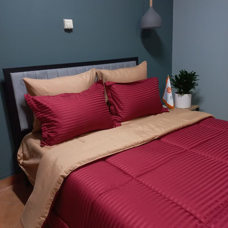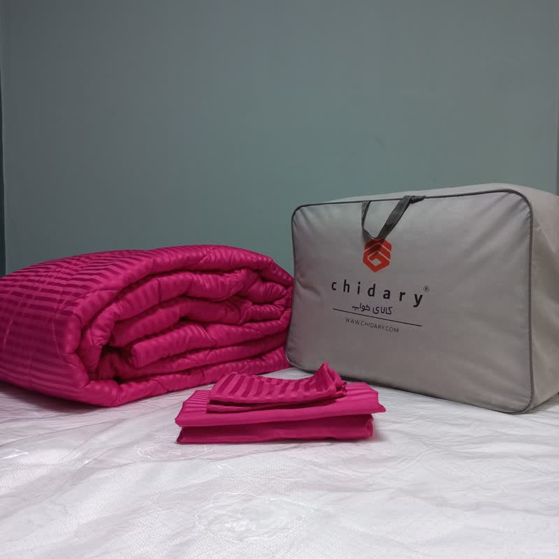 سرویس روتختی یک نفره 4 تکه چیداری دوخته شده به صورت دورو با دستگاه های تمام صنعتی ترکیبی از پارچه هتلی ساتن نخ و ساده میکروفایبر شامل دو عدد روبالشی که یک عدد آنها از پارچه هتلی و دو عدد آنها از پارچه میکرو ساده تهیه شده است و دارای یک عدد ملحفه کش دوزی شده ، و یک عدد لحاف می باشد.