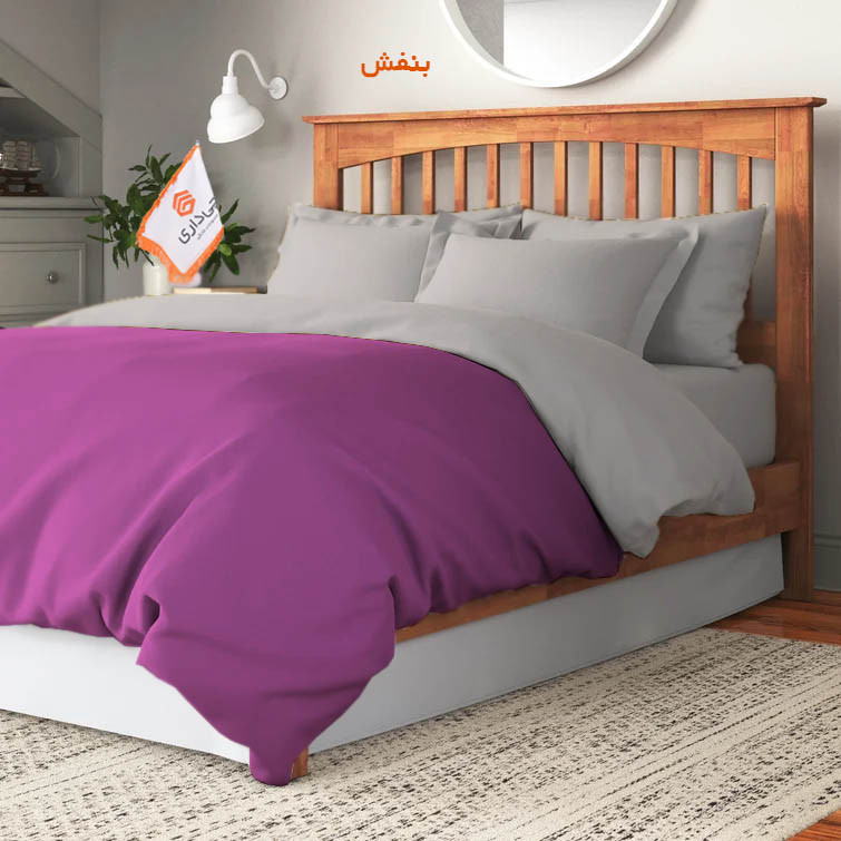 این سرویس کاوری دونفره دارای کاورلحاف میباشد یعنی لحاف ندارد، به این صورت که شما میبایست در منزل لحاف داشته باشید و با کاور لحاف آنرا بپوشانید. رنگ روتشکی و روبالش های نقره ای می باشد و کاور لحاف به صورت دورنگ دوخته شده که یک طرف آن نقره ای و طرف دیگه اون رنگ انتخابی شما مطابق تصویر می باشد . با توجه به اینکه کاورلحاف زیپ‌دار میباشد، شما میتوانید آنرا از لحاف خود جدا کرده و به راحتی در ماشین لب...
