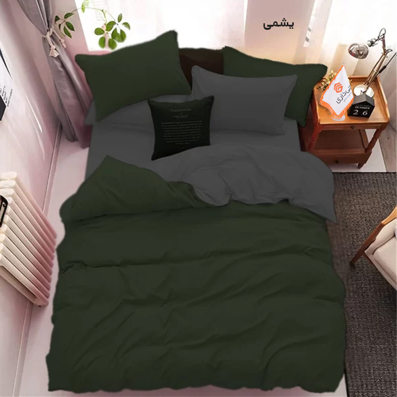 این سرویس کاوری یک نفره دارای کاورلحاف میباشد یعنی لحاف ندارد، به این صورت که شما میبایست در منزل لحاف داشته باشید و با کاور لحاف آنرا بپوشانید. رنگ روتشکی و روبالش های طوسی تیره می باشد و کاور لحاف به صورت دورنگ دوخته شده که یک طرف آن طوسی تیره و طرف دیگه اون رنگ انتخابی شما مطابق تصویر می باشد .