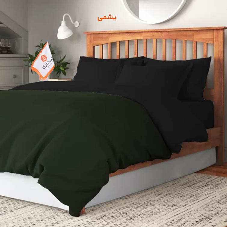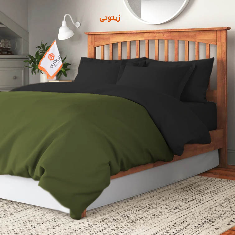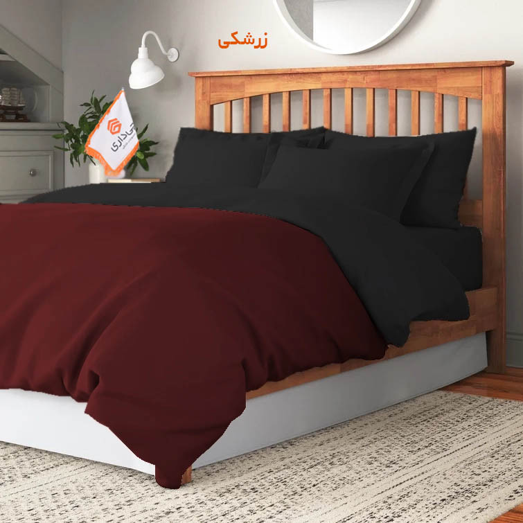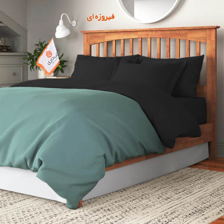 این سرویس کاوری دونفره دارای کاورلحاف میباشد یعنی لحاف ندارد، به این صورت که شما میبایست در منزل لحاف داشته باشید و با کاور لحاف آنرا بپوشانید. رنگ روتشکی و روبالش های مشکی می باشد و کاور لحاف به صورت دورنگ دوخته شده که یک طرف آن مشکی و طرف دیگه اون رنگ انتخابی شما مطابق تصویر می باشد .