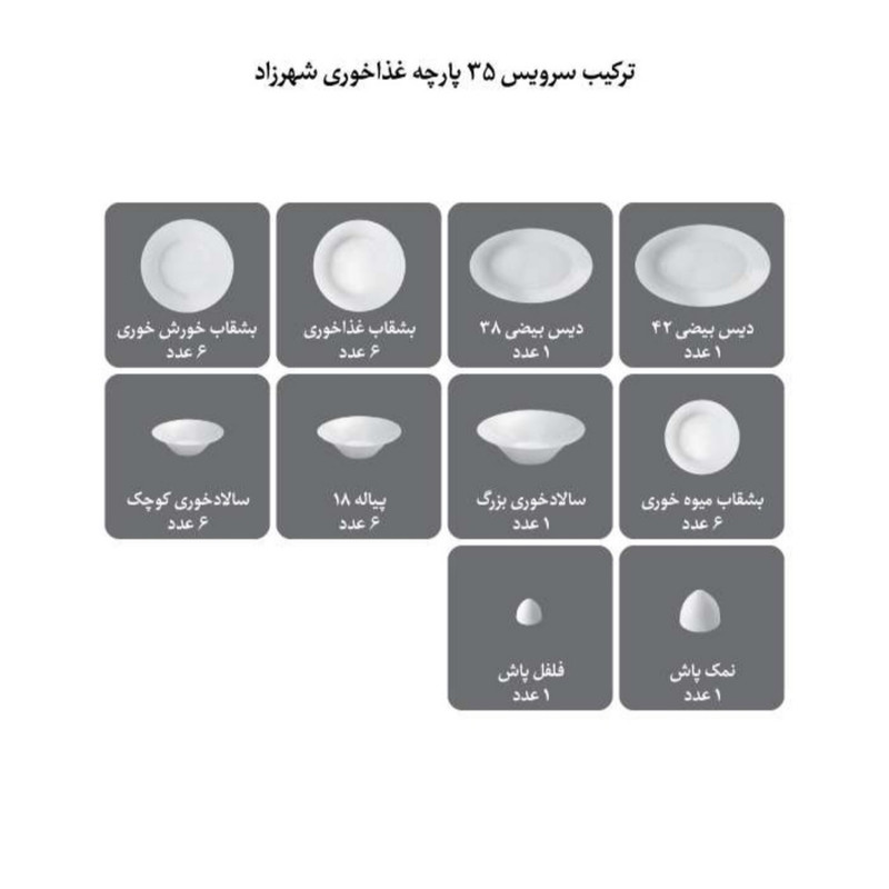 سرویس غذاخوری 35 پارچه چینی زرین ایران سری شهرزاد مدل کلودیا درجه سه