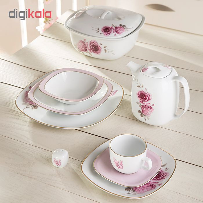 سایر توضیحات | - اقلام سرویس: - 1 عدد دیس - 6 عدد بشقاب غذاخوری - 6 عدد بشقاب خورشخوری - 6 عدد پیشدستی - 6 عدد پیاله - 2 عدد نمکدان |