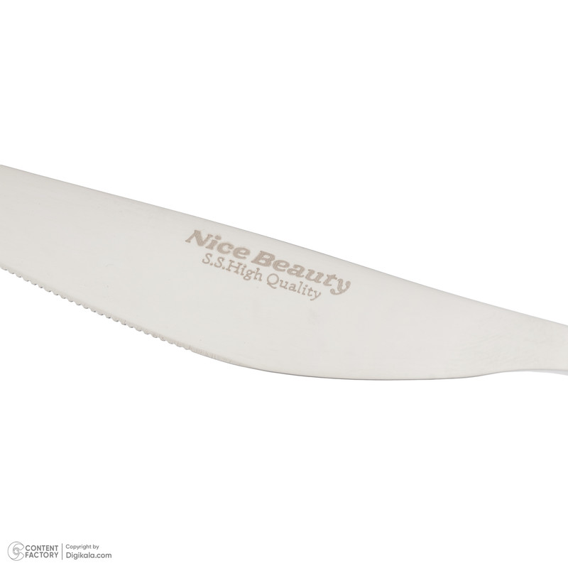 سرویس قاشق چنگال 119پارچه نایس بیوتی ( Nice Beauty ) تمام نیازهای شما را برطرف می کند.وجه تمایز این سرویس که به جرات میتوان گفت یکی از بهترین ست های کاربردی،اصولی وبا کیفیت موجود در بازار نسبت به برند های دیگر میباشد ،ضخامت 3٫5 میلیمتر واقعی باطراحی مدل های روز اروپایی است که پولیش عالی و با کیفیت این محصول، سهم چشم گیری در انتخاب این محصول به مشتریان خاص پسندش میدهد، لازم به ذکر است،این محصول با ظاهری زیبا و چشم نواز با رنگ براق خود زیبایی و شکوه خاصی به پذیرایی شما می دهد و تجربه پذیرایی ماندگاری را برای شما به ارمغان می آورد . این سرویس 18نفره از نوع بهترین استیل کروم نیکل10/18 جهان ساخته شده وکاملا ضد زنگ وضد سیاه شدگی و قابل شستشو در ماشین ظرفشویی می باشد. کاردهای میوه خوری سه بعدی این ست ،فوق العاده تیز میباشد که براحتی پوست میوه ها را جدا میکند و با طرح دسته 3 بعدی بسیار خوش دست میباشد. کارد استیک این ست دارای دندانه های برنده فوق العاده تیزی بوده و اقلام دیگر آن نیز چنین میباشد و شما را بی نیاز از هر گونه خرید اضافه می نماید.