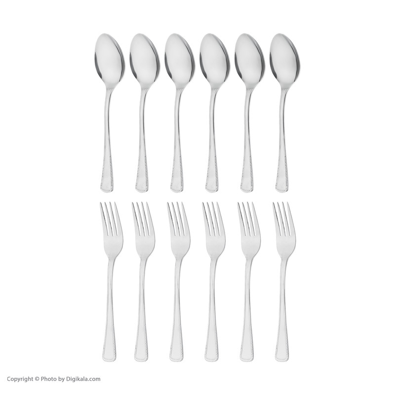 سایر توضیحات | - دارای 6 عدد قاشق و 6 عدد چنگال - ابعاد قاشق: 1×4×18.5 سانتیمتر و وزن: 35 گرم - ابعاد چنگال:1×2×18.5 سانتیمتر و وزن: 40 گرم |