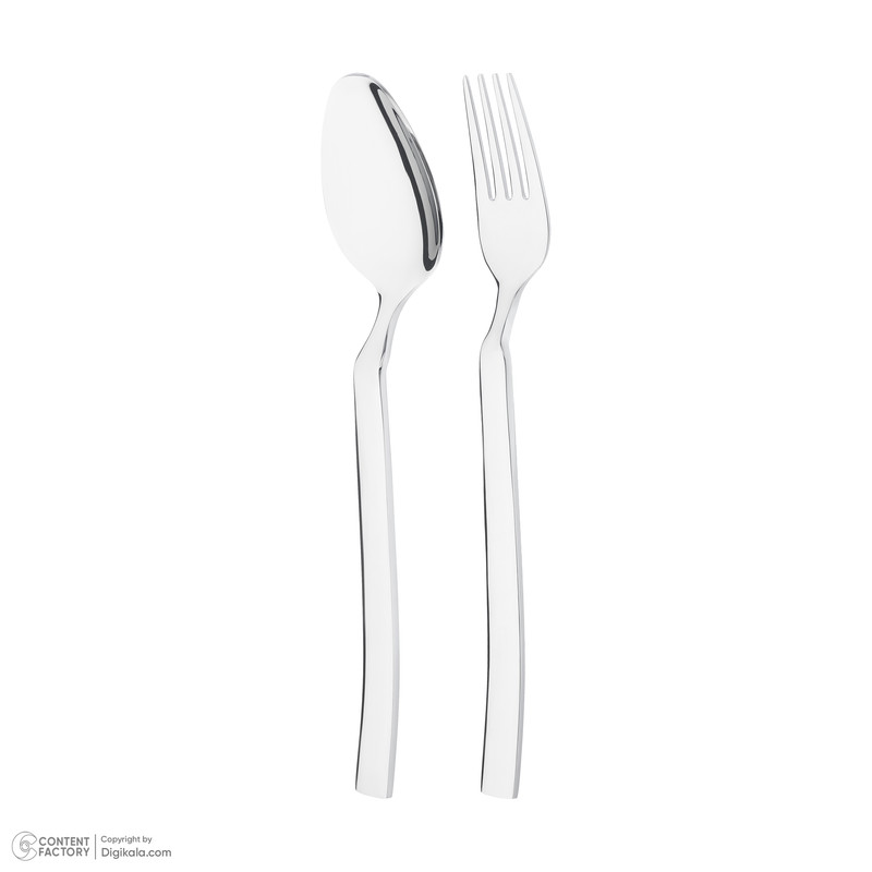 سرویس قاشق و چنگال 12 پارچه مدل میلان براق شامل 6 عدد قاشق غذاخوری و 6 عدد چنگال غذاخوری است.طراحی ساده و زیبای مدل میلان باعث شده یکی از پرطرفدارترین مدل های قاشق وچنگال باشد.محصول فوق ساخته شده از استیل ضد زنگ و بدون تغییر رنگ با کفه آسیایی است.