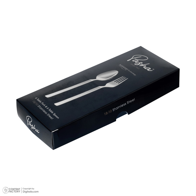 ست قاشق و چنگال 12 پارچه ورونا براق درسایز لارج مناسب 6 نفر است . این محصول از استیل ضد زنگ با تکنولوژی شرکت زولینگن آلمان تهیه شده است، که در بسته بندی مقوایی عرضه میشود. طراحی ساده و زیبای آن باعث شده یکی از پرطرفدارترین محصولات " صنایع استیل ایران " با برند پاشا باشد.