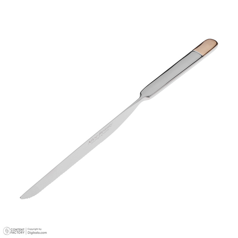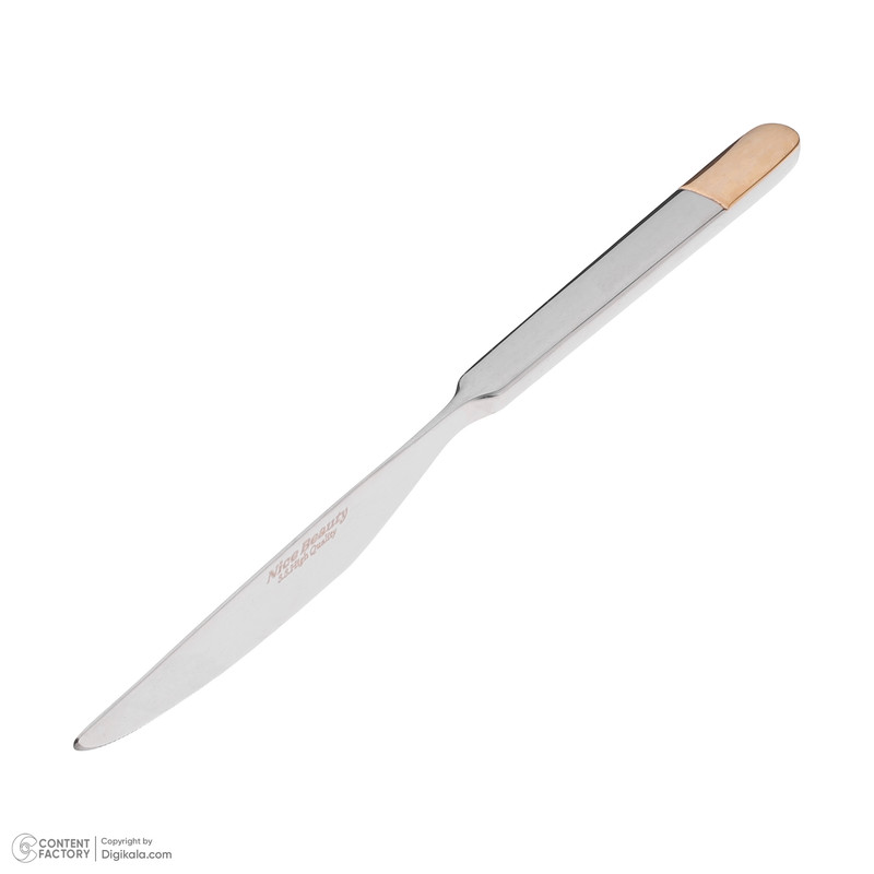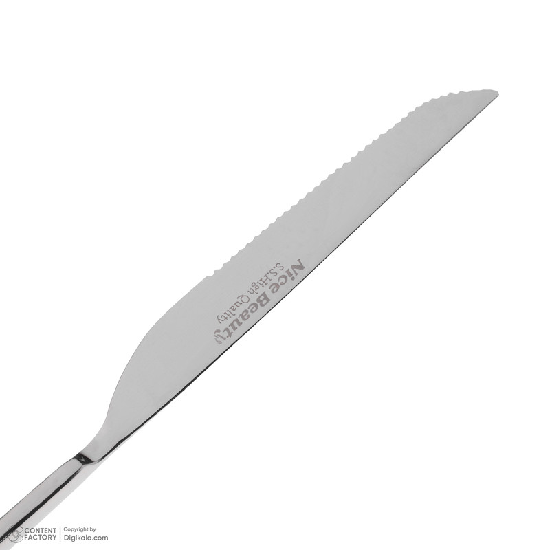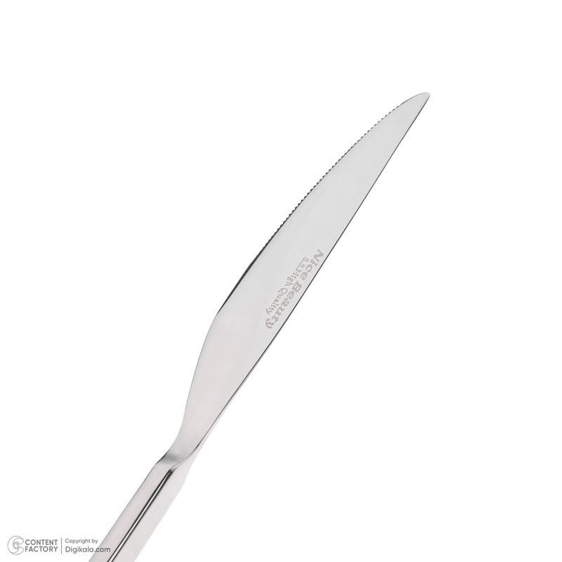 سرویس قاشق چنگال ۳۰ نفره نایس بیوتی ( Nice Beauty ) تمام نیازهای شما را برطرف می کند.وجه تمایز این سرویس که به جرات میتوان گفت یکی از بهترین ست های کاربردی،اصولی وبا کیفیت موجود در بازار نسبت به برند های دیگر میباشد ،ضخامت ۳٫۵ میلیمتر واقعی باطراحی مدل های روز اروپایی است که پولیش عالی و با کیفیت این محصول، سهم چشم گیری در انتخاب این محصول به مشتریان خاص پسندش میدهد، لازم به ذکر است،این محصول نیمه طلایی براق،با ظاهری زیبا و چشم نواز که با نوارطلایی رنگ دور آن زیبایی و شکوه خاصی به پذیرایی شما می دهد و تجربه پذیرایی ماندگاری را برای شما به ارمغان می آورد . این سرویس 143پارچه از نوع بهترین استیل کروم نیکل10/18 جهان ساخته شده وکاملا ضد زنگ وضد سیاه شدگی و قابل شستشو در ماشین ظرفشویی می باشد. کاردهای میوه خوری سه بعدی این ست ،فوق العاده تیز میباشد که براحتی پوست میوه ها را جدا میکند و با طرح دسته 3 بعدی بسیار خوش دست میباشد. کارد استیک این ست دارای دندانه های برنده فوق العاده تیزی بوده و اقلام دیگر آن نیز چنین میباشد و شما را بی نیاز از هر گونه خرید اضافه می نماید.