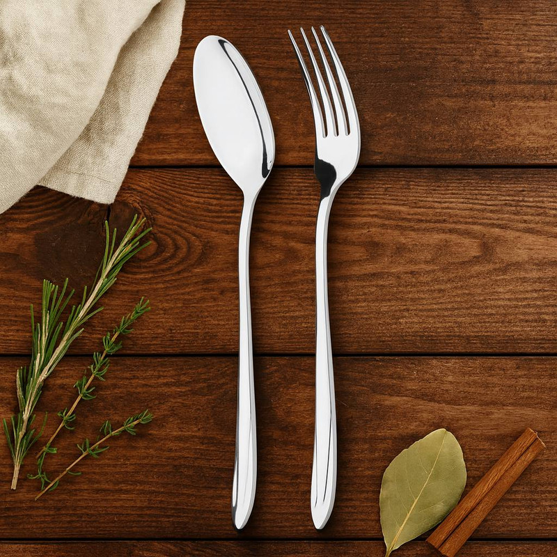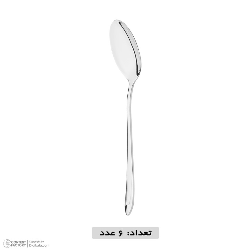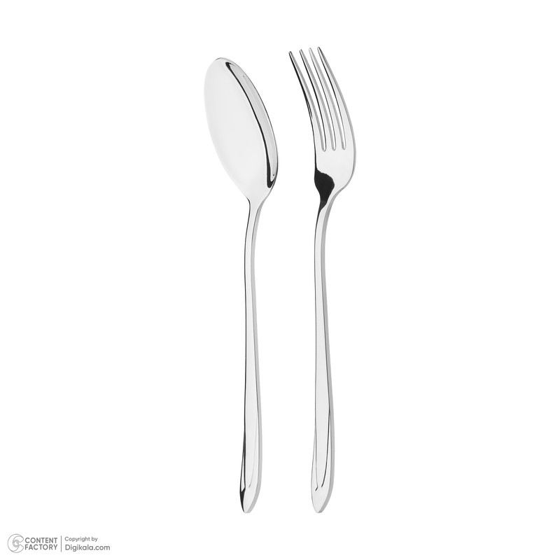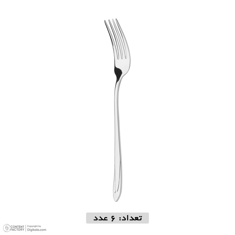 سایر توضیحات | 6 عدد قاشق غذاخوری به ابعاد 20x3x0.25 سانتی متر و وزن 55 گرم - 6 عدد چنگال غذاخوری به ابعاد 21x2x0.25 سانتی متر و وزن 40 گرم - استیل18/10ضد زنگ با ضخامت2/5میلیمتر |