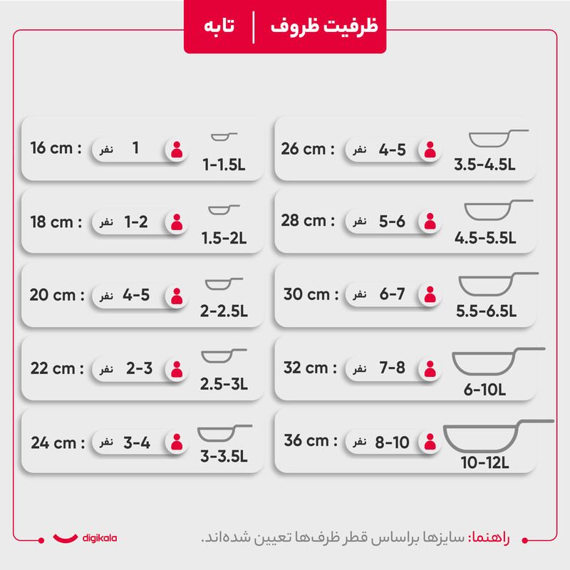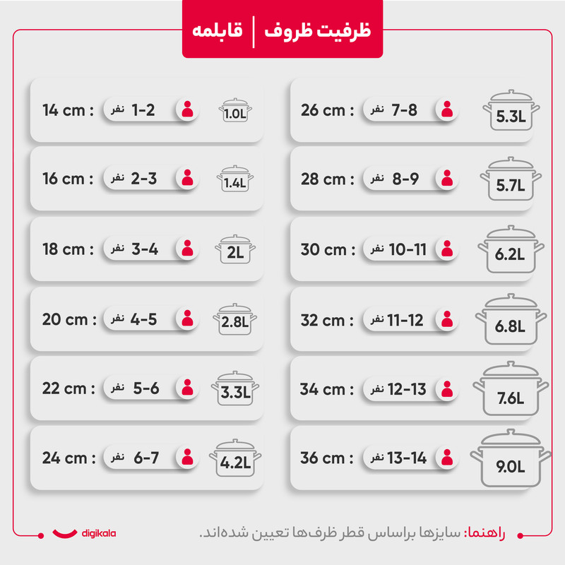 | سایز قابلمهها | 24 سانتیمتر, 26 سانتیمتر, 28 سانتیمتر, 32 سانتیمتر |