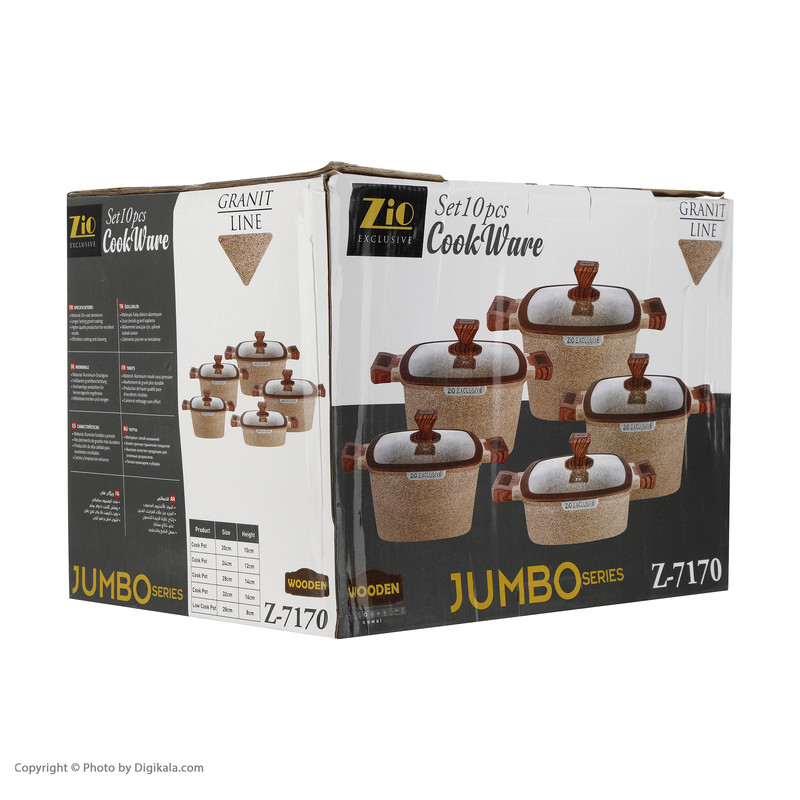 | وزن ظروف | قابلمه سایز 32: 2900 گرم، قابلمه سایز 28: 2325 گرم، قابلمه سایز 26: 1840 گرم، قابلمه سایز 24: 1230 گرم، تابه دو دسته سایز 28: 2045 گرم |