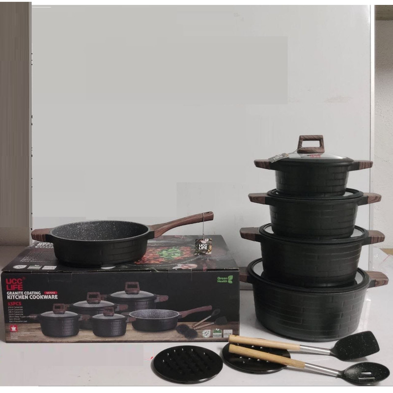 | سایر توضیحات | سرویس پخت و پز ده پارچه یو سی سی لایف مدل UC1313 دارای ظروف گرانیتی به روز که یکی از بهترین کیفیت های موجود در بازار را دارا است. این مجموعه 13 عددی ظروف آشپزی از اجزای زیر تشکیل شده است. چهار عدد قابلمه در سایزهای 20،24،28،32 سانتی متر با درب آنها ، یک عدد ماهیتابه درسایز 28 سانتی متری بدون میباشد . دارای ویژگی های زیر میباشد : پوشش گرانیت، ساخته شده از آلومینیوم ، آسان تمیز میشود ،دستگیره های محکم و ایمن ، ضد خش ،درب برای حفظ گرما میباشد. |