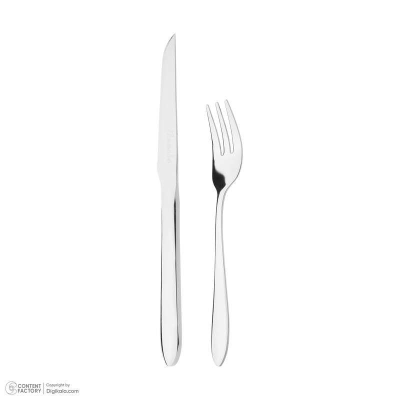 | سایر توضیحات | 6 عدد کارد میوه خوری به ابعاد 17.5x1x1 سانتی متر و وزن 60 گرم - 6 عدد چنگال میوه خوری به ابعاد 14x2x0.25 سانتی متر و وزن 10 گرم - استیل18/10ضد زنگ با ضخامت2/5میلیمتر |