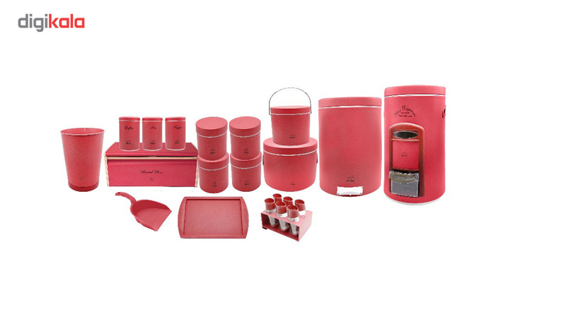 سایر توضیحاتبهاز کالا منطبق با زندگی مدرن با استفاده از متریال عالی و استاندارد های ملی و بین المللی کالاهایی با کیفیت بالا تولید کرده است. این محصول ساخته شده از ورق های مخصوص تین پلیت با پوشش پودرهای الکتروستاتیک و لاکهای بهداشتی می باشد و در برابر رطوبت هوا مقاوم می باشد. برای تمیز کردن کافی است از یک تکه ابر یا پارچه نرم و محلول مایع ظرفشویی استفاده نمایید. از کشیدن اجسام سخت مانند سیم ظرفشویی بر روی این محصول خودداری کنید تا باعث از بین رفتن رنگ آن نشود. سرویس 23 پارچه سطل برنج پیمانه دار:2490 گرم سطل قند: 1530 گرم سطل روغن: 630 گرم قوطی حبوبات: 590 گرم سرویس جانانی: 2200 گرم سینی مستطیل: 550 گرم سرویس ادویه: 1210 گرم سطل پدالدار 14 لیتری: 2430 گرم ترازو: 620 گرم خاک انداز: 130 گرم جا قاشقی: 360 گرم