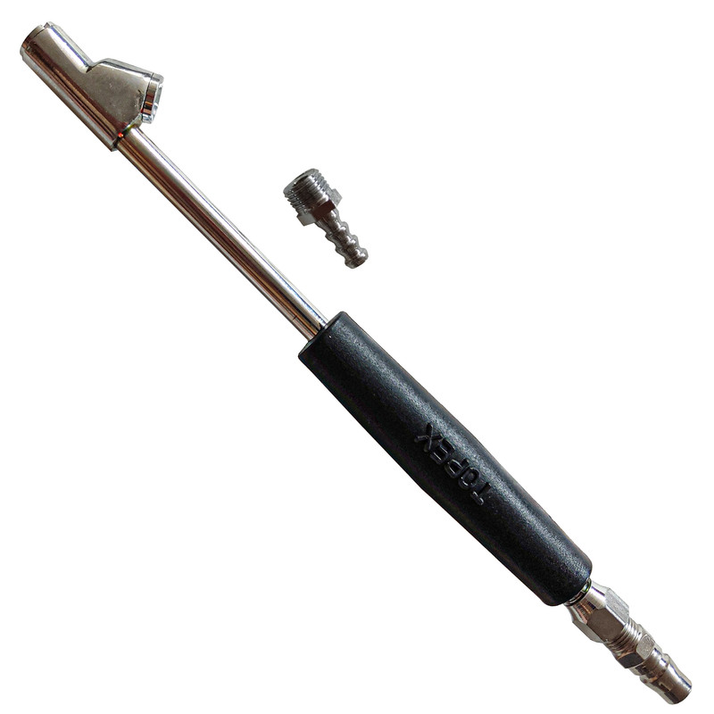 | سایر توضیحات | ساخت شرکت تاپکس ساخته شده از آلیاژ فولاد با روکش کروم دارای سری دو طرفه برای دسترسی راحت به انواع والف لاستیک خودرو دسته پلاستیکی ضد لغزش دهانه ورودی هوا 1/4 اینچ دهانه خروجی هوا به قطر 8 میلیمتر کیفیت ساخت بالا |
