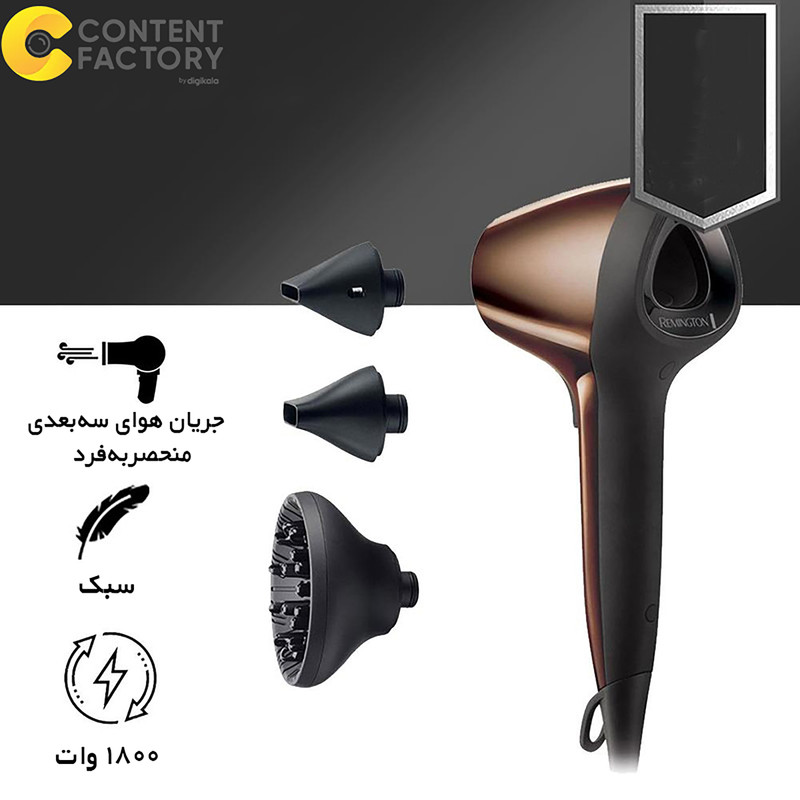سری D7 پیشرفته ترین سری از سشوار های شرکت رمینگتون میباشد که بخاطر تکنولوژی جدیدی که این دستگاه از آن بهره میبرد ابعاد کوچک با کارایی بسیار بالاتر از سایر سشوارها دارد تا بحال تنها سه شرکت موفق به ساخت دستگاه با این تکنولوژی شده اند که در رقابت با رمینگتون قیمتهای بسیار بالاتری (حدود سه برابر بالاتر) دارند که باعث شده فروش آنچنانی نداشته باشند و رمینگتون پیشتاز این عرصه باشد. بدنه این سشوار رمینگ...