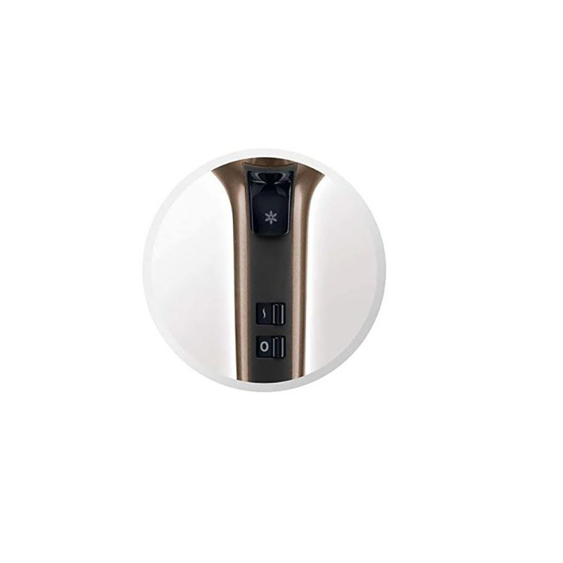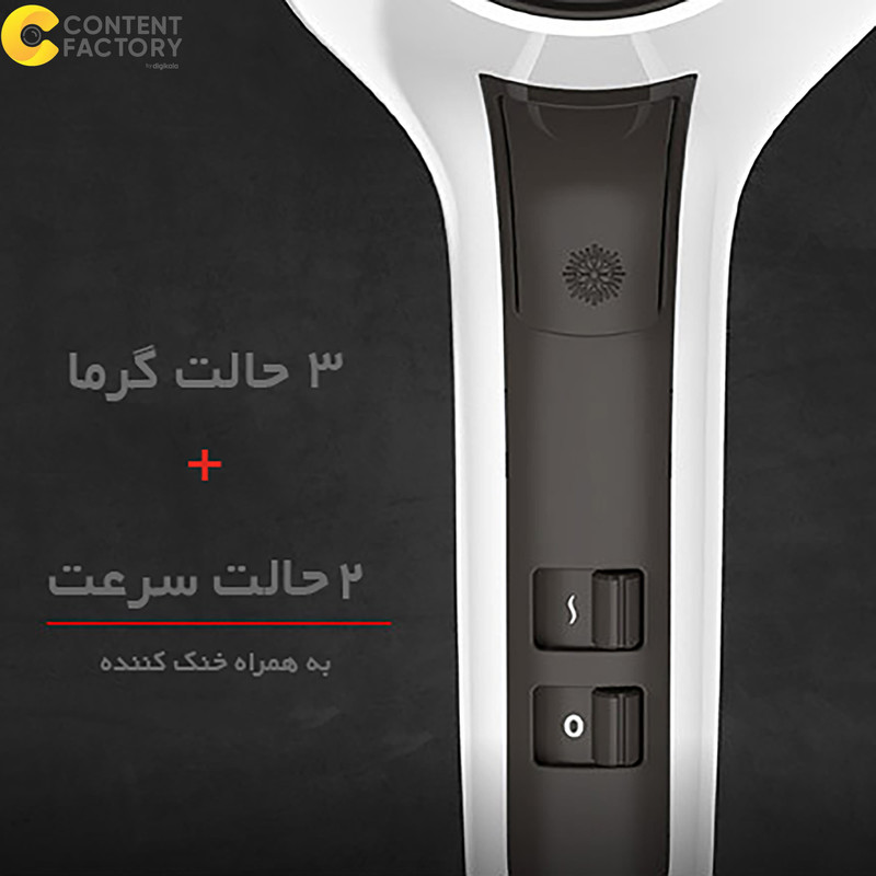 روی بدنه این محصول کلیدهایی برای روشن و خاموش کردن دستگاه و همچنین تنظیم حرارت و سرعت خروج هوای گرم در نظر گرفته شده است. به کمک این کلیدها شما می توانید حرارت و سرعت را تنظیم نمایید. این سشوار با تکنولوژی AIR 3D باعث میشود که نتیجه ایی بهتر در زمانی بسیار کمتر موها حالت دلخواه را پیدا کنند و با فناوری یون از حالت الکتریسیته شدن موها جلوگیری میشود و موها را براق و درخشان می نماید.