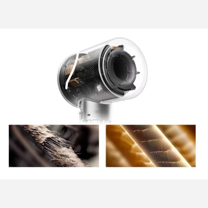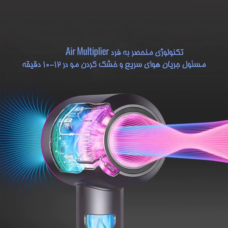 این سشوار، با ظاهری شیک و کارایی بالا، یک انتخاب عالی برای استفاده در سالن زیبایی و استفاده در خانه است. آن را امتحان کنید و تجربهی یک حالت خشک کنی متمایز و سریع را برای خودتان تجربه کنید! سشوار leafless برای خشک کردن مو از فن داخلی به جای پرههای معمولی استفاده میکنند. این فن داخلی، جریان هوای قوی و مستقیمی را ایجاد میکند که به موها اجازه میدهد به سرعت خشک شوند. این روش خشک کردن مو باعث کاهش زمان مورد نیاز برای خشک کردن مو میشود و همچنین موها را از حرارت اضافی محافظت میکند. این عملکرد متمایز سشوار leafless را به یک انتخاب بسیار مورد توجه برای افرادی که به دنبال یک روش موثر و موثر برای خشک کردن موهای خود هستند، تبدیل کرده است. این سشوار دارای یک موتور v9 و فن 13 پره است که به یک دسته متصل هست. با ظاهری کاملا ساده طراحی شده و طوری طراحی شده است که هنگامی که در دست قرار می گیرد وزن خاصی را احساس نمی کنید. چرخش 110 هار دور در دقیقه در این سشوار ممکن شده است و همین باعث ایجاد فرکانس هایی شده است که تقریبا غیر قابل شنیده شدن دارند. به علاوه در این سشوار از فناوری استفاده کرده است که در قسمت داخلی عناصر گرمایشی قرار داده است و ایمنی را بالا تر برده است. و گفته می شود در این سشوار کمتری آسیب را به موهای سر وارد می کند. قدرت فوق العاده سشوار از موتور گرفته می شود که در دسته سشوار تعبیه شده است. این موتور کوچک فشار هوای متمرکزی که برای خشک نمودن و حالت دادن به موی سر مناسب باشد را تولید می کند.