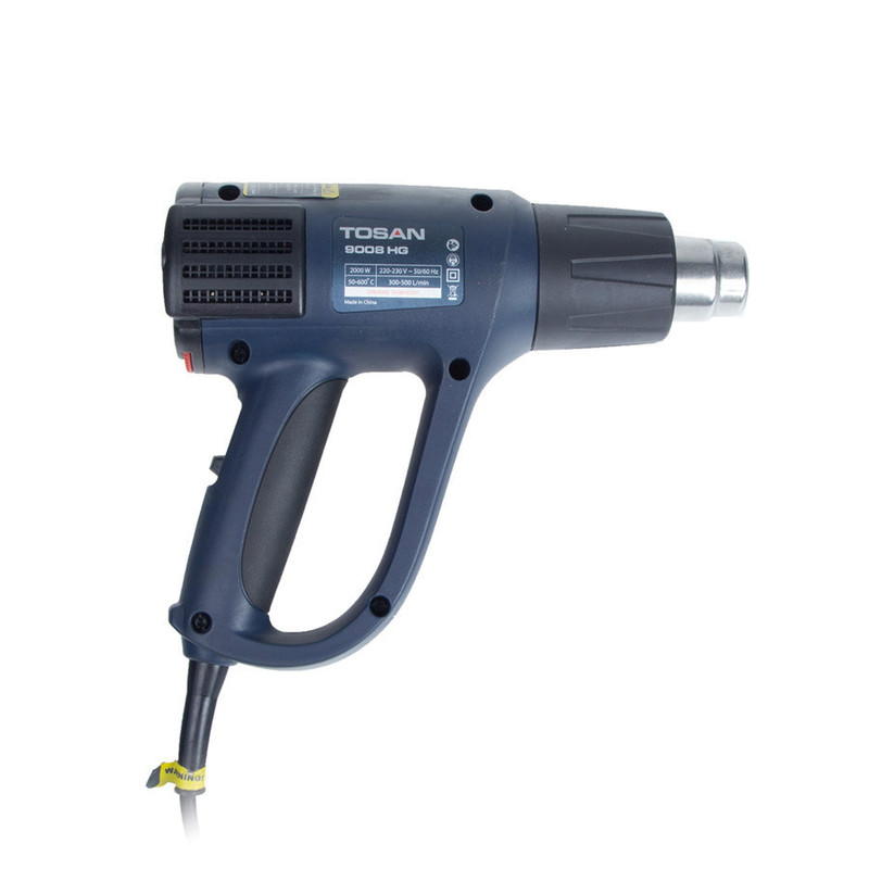 سشوار صنعتی مدل 9008HG یک دستگاه دمنده است. این محصول که با برندی ایرانی عرضه میشود، موتور قدرتمندی دارد. در این دستگاه قابلیت تنظیم فشار دمش باد و میزان حرارت وجود دارد. شکل ظاهری و وزن مناسب محصول، استفاده از این دستگاه را آسانتر کرده است. مدل 9008HG یک از سشوارهای صنعتی تولیدشده توسط شرکت «توسن» (Tosan) است. این دستگاه قابلیت دمش هوای گرم و معمولی را دارد. یک موتور 2000 واتی عمل دمش را انجام میدهد و یک المنت که بین مسیر دمش قرارگرفته، باعث گرم شدن باد خروجی میشود. یک کلید سه حالته، روی دستهی محصول قرار دارد. با استفاده از این کلید نوع باد خروجی (گرم یا معمولی) و میزان فشار باد خروجی مشخص میشود. در حالت اول باد معمولی با فشار 300 لیتربردقیقه از نازل دستگاه خارج میشود. حالت دوم مشابه حالت اول است ولی باد خروجی گرم میرود. در حالت سوم هم باد گرم با فشار 500 لیتربردقیقه در اختیار کاربر قرار میگیرد. یک کلید گردان در بالای دستهی محصول قرار دارد که به کمک آن میتوانید دمای هوای خروجی از دستگاه را بین 50 تا 600 درجهی سانتیگراد تنظیم کنید. البته تغییرات دما، در صورتی است که کلید سه حالته، روی حالت 2 یا 3 باشد. شکل تفنگی دستگاه در کنار وزن 900 گرمی محصول، باعث میشوند تا کاربر بهراحتی از سشوار صنعتی مدل 9008HG استفاده کند.