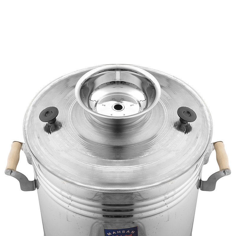 سماور گازی مهسان استیل کار 33 لیتری با گنجایش30 لیتر برای مصارف دکه ، مغازه و هیت مناسب و سماور فاقد ترموکوبل از جنس استیل نگیر (استیل ضد زنگ )می باشد