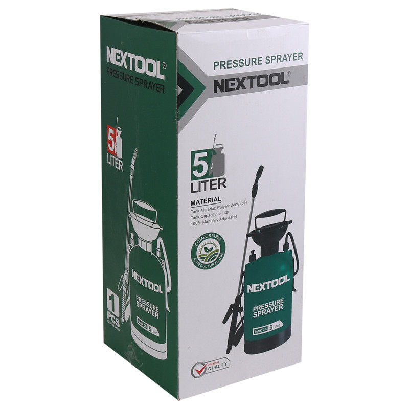 سمپاش نکستول گروپ مدل NT-5L حجم 2 لیتر با کمک نیروی انسانی سموم را به طور گسترده و یکنواخت میپاشد . این سمپاش دارای نازل (سری) قابل تنظیم واز جنس فلز برنج است تا رطوبت باعت پوسیدگی این قطعه نشود. سمپاش دستی نکستول گروپ مدل NT-5L جهت از بین بردن آفات، حشرات وغیره استفاده میشود. همچنین از این سمپاش جهت گندزدایی و میکروبکشی در محیطهایی از قبیل محوطههای بسته و باز مانند انباری وغیره میتوان استفاده نمود. این سمپاش به گونهای طراحی شده است تا هنگام سم پاشی کاربر بدون خستگی و با سرعت سم پاشی و مراقبت و نگهداری از گیاهان را انجام دهد. با استفاده ازاین محصول دروقت و انرژی کاربر صرفه جویی چشمگیری میشود. جهت کاهش شکستگی مخزن، ضخامت مخزن این سمپاش تا حد قابل ممکن افزایش داده شده است. جنس بدنه سمپاش Nextool از پلاستیک مقاوم در برابر ضربه و فشار بوده و به همراه پایه تحتانی مخزن که جهت حفظ تعادل بهتر و افزایش ضربهپذیری آن میشود مطابق با استاندارد ملی ایران میباشد و دارای استاندارد بین المللی CE جهت افزایش اطمینان کاربر از این کالا است تا خریدار با خیال آسوده این کالا را انتخاب و استفاده نماید.