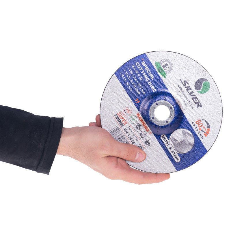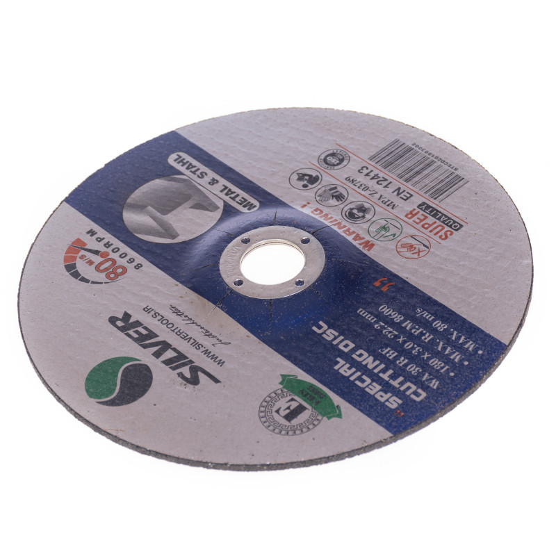 صفحه برش سیلور یک سنگ برش آهن با سایز 22.2 × 3 × 180 است که دارای مشخصه WA 30 R BF میباشد به این معنا که ساخته شده از اکسید آلومینیوم سفید (WA)، با اندازه دانهی متوسط (30)، با درجه سختی متوسط (R) و دارای پیوند رزینی تقویت شده (BF) است. ساختار فیبری این صفحه فرز دوام و استحکام آن را افزایش داده تا به خوبی برای برش انواع فولاد و آهن در انواع امور کارهای آهنگری، تاسیسات و صنایع عمومی و تخصصی مناسب باشد. این دیسک گزینهی بسیار خوبی برای کسانی است که به خرید صفحه برش آهن می اندیشند. قطر کلی این دیسک برابر با 180 میلیمتر یا 7 اینچ و قطر سوراخ داخلی یا قطر محور آن برابر با 22.2 میلیمتر است.حداکثر سرعت خطی این دیسک 80 متر بر ثانیه و سرعت چرخشی آن برابر با 8600 دور در دقیقه است و میتوانید آن را بر روی انواع فرز آهنگری نصب کنید و به برشکاری خود بپردازید.