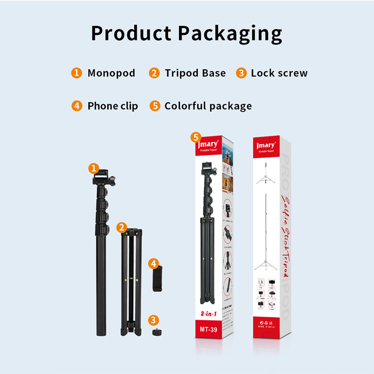 سهپایهی جی ماری مدل «MT-39» وسیلهای جانبی مناسب، برای عکاسان تازهکار و باتجربه محسوب میشود. بهجرئت میتوان گفت استفاده از سهپایه یکی از ضروریترین کارهای یک عکاس است. این مدل برای عکاسی با انواع دوربینهای مختلف،گوشی،پروژکتور،میکروفن بسیار مناسب است. محور میانی سهپایه مخصوص عکاسی دارای گیره جهت نگهداری دستگاه های قابل استفاده شماست که به شرطی که توان پیچ شدن به پایه را داشته باشند در غیر این صورت شرکت جی ماری یک نگهدارنده گوشی موبایل به این سه پایه اضافه کرده است که در دو حالت افقی و عمودی قابل استفاده است و قابلیت تغییر سایز از 3.5 تا 6/8 اینچ را دارد.سری این سه پایه قابلیت چرخش 180 درجه دارد به طوری که شما می توانید در صورت نیاز در محور زاویه 180 درجه حالت صفحه نمایش را تغییر دهید. گردنی سه پایه جی ماری قابلیت تغییر ارتفاع دارد. پایه جی ماری در حالت معمولی 55.5 سانتی متر و در حالت باز تا 162 سانتی متر می باشد.