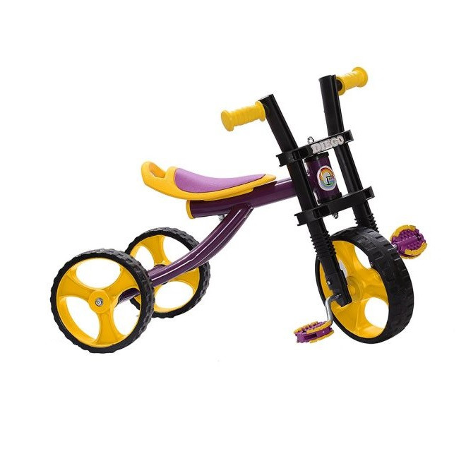 سه چرخه مدل دیگو(Diego) دارای قابلیت تنظیم صندلی متناسب برای قد کودکان بالای یکسال می باشد. دو شاخه و فرمان یک تکه مشکی رنگ و ادامه بدنه از جنس فلزی در رنگ های مختلف مورد پسند دختران و پسران دلبند شما می باشد. چرخ های این سه چرخه از جنس پلاستیک سخت می باشد که نیازی به باد کردن ندارد به علاوه ابعاد این محصول متناسب برای قامت کودکان طراحی شده تا بازی کردن با این سه چرخه ی زیبا و خاص علاوه بر سرگرمی به تقویت مهارت های حرکتی این عزیزان بپردازد. این سه چرخه سبک بوده و قابل استفاده در داخل و خارج خانه می باشد.