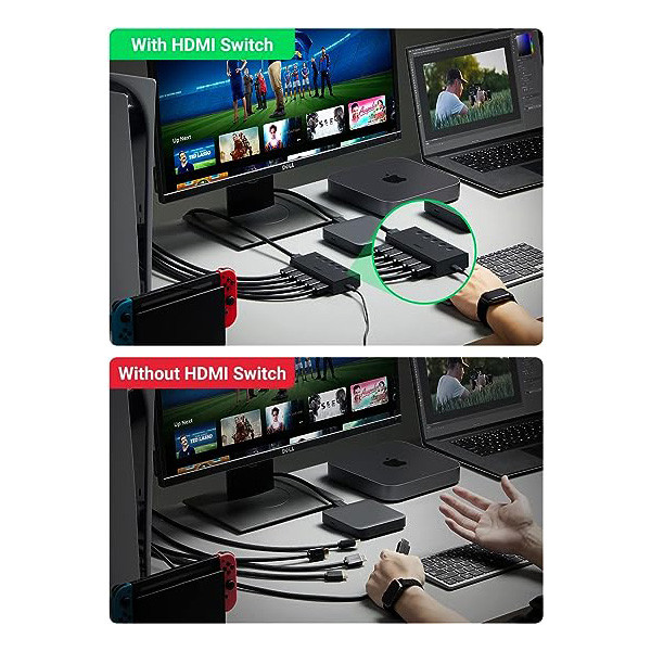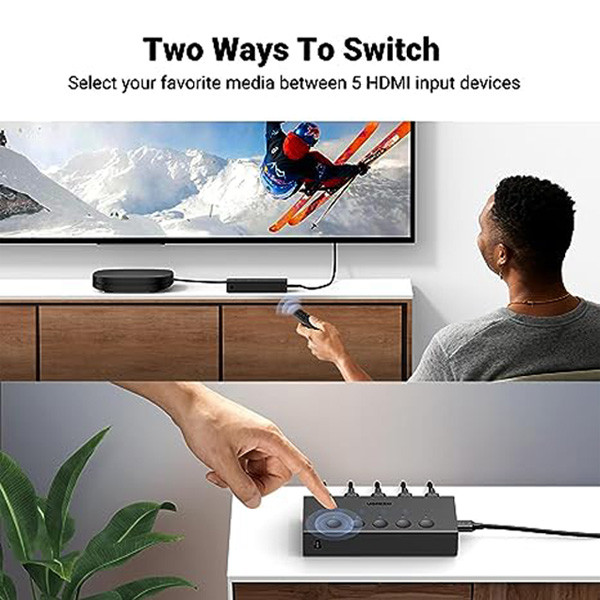 سوئیچ HDMI یوگرین 1 به 5 مدل CM568-90512 4K، برای اشتراک گذاری چند سیستم پخش کنندهی تصویر به یک نمایشگر استفاده میشود. این محصول یکی از کاربردیترین اقلامی است که امروزه با پیشرفت تکنولوژی استفاده از آن نیز به نوعی الزام تبدیل گشته است. سوئیچ HDMI یوگرین 1 به 5 مدل CM568-90512 4K، زمانی مورد استفاده قرار میگیرد که بخواهید از چند دستگاه در موقع لزوم استفاده کنید. این وسیله اتصال کننده دستگاهای پخش کننده به نمایشگر بصورت جداگانه است. بوسیله ریموت کنترل محصول و یا دکمهی تعبیه شده روی دستگاه میتوان به صورت جداگانه پورت HDMI دستگاه را سوئیچ کرد. دارای نصب آسان میباشد و بهترین گزینه برای کنفرانسها و سرگرمی است. با استفاده از سوئیچ HDMI یوگرین 1 به 5 مدل CM568-90512 4K، میتوان 5 تصویر مختلف را همزمان به یک نمایشگر به متصل کرد. این سوئیچ پشتیبانی از کیفیت تصویر 4K@60Hz را دارد و دارای درگاه برق USB-C میباشد.این محصول با انواع کنسول های بازی و ذخیره ساز های تصاویر (DVR,NVR) سازگار می باشد.