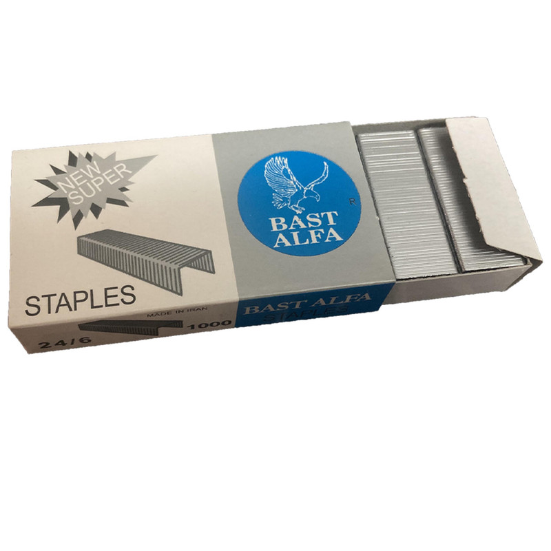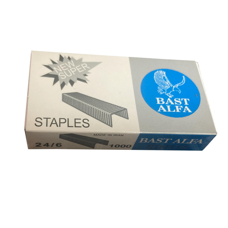 | سایر توضیحات | این سوزن منگنه سری جدید سوزن منگنه بست آلفا میباشد ورنگ سوزن منگنه تغییر کرده وبجای رنگ مسی رنگ استیل دارد و جعبه آن هم ماندد قبل نیست وبصورت کشویی باز میشود تعداد:2 بسته 1000 عددی سوزن منگنه کاربردی کد 24/6 عرض: 12 میلی متر ارتفاع پایه: 5 الی 6میلی متر |