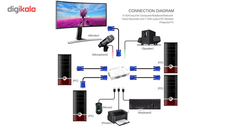 سایر توضیحات کنترل چند کامپیوتر از طریق سیستم عامل نوع پورت های ورودی ماوس و کیبرد: 4عدد دارای کابل به تعداد پورت ها سازگار با تمامی سیتم عامل ها