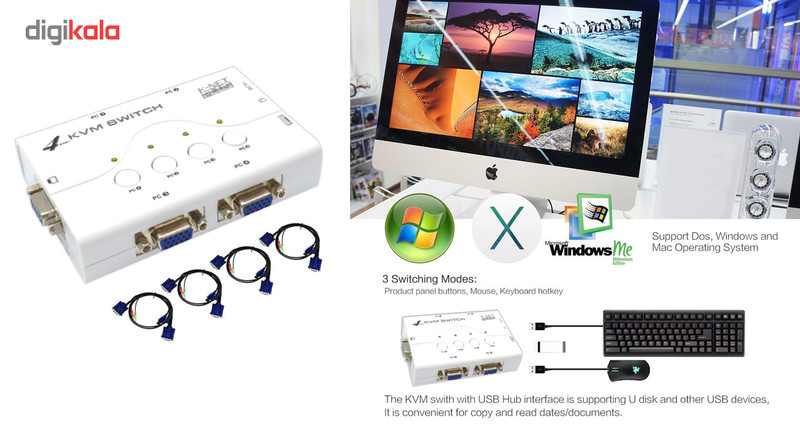 سایر توضیحاتکنترل چند کامپیوتر از طریق سیستم عامل نوع پورت های ورودی ماوس و کیبرد: 4عدد دارای کابل به تعداد پورت ها سازگار با تمامی سیتم عامل ها