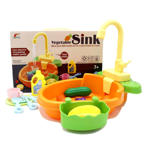 سینک اسباب بازی ظرفشویی سبزیجات یک بازی مهیج و دوست داشتنی برای کودک دلبندتان خواهد بود! او با بازی با ظرف ها و میوه ها و شستن آنها فنون و مهارت های زندگی را یاد می گیرد. ضمن آنکه می تواند با آن ساعت ها سرگرم شود چرا که مثل یک سینک ظرفشویی واقعی ست و کودک دوست دارد تجربه کند، تقلید کند و سرگرم شود.