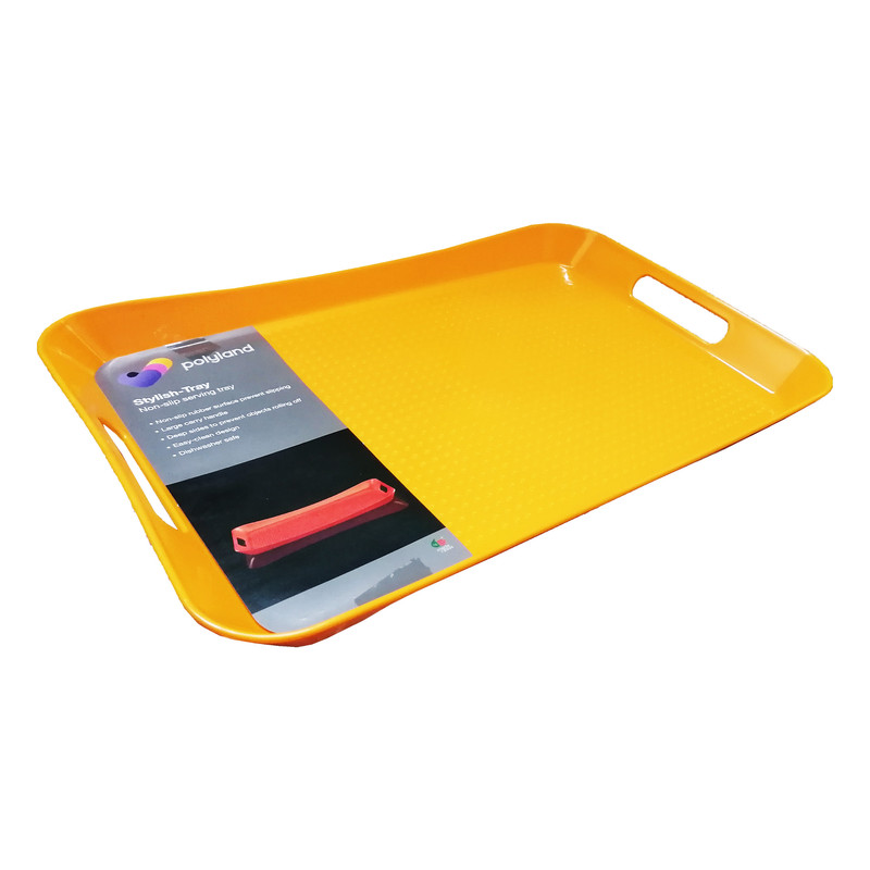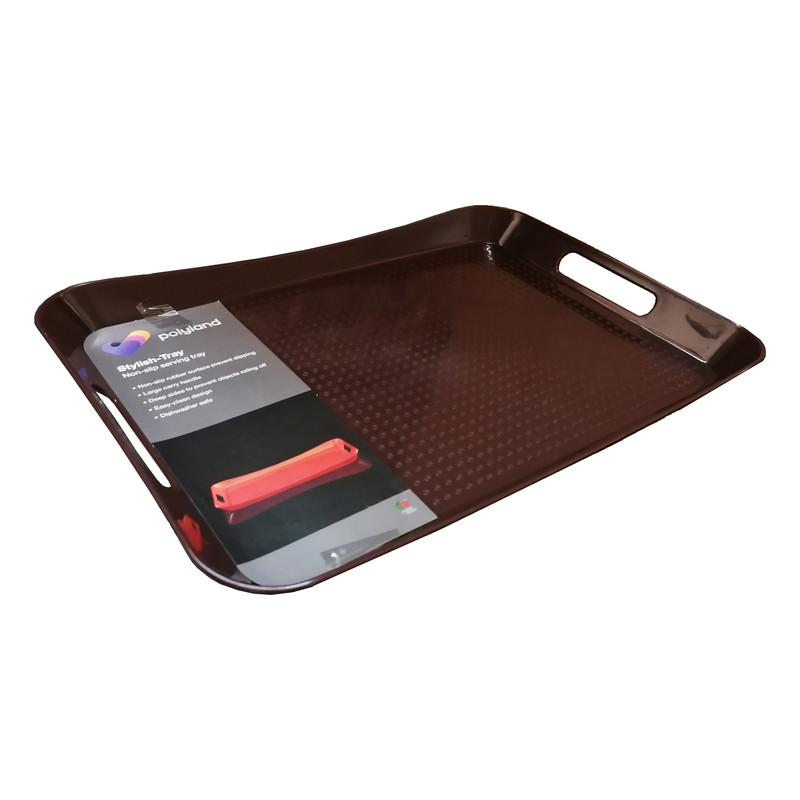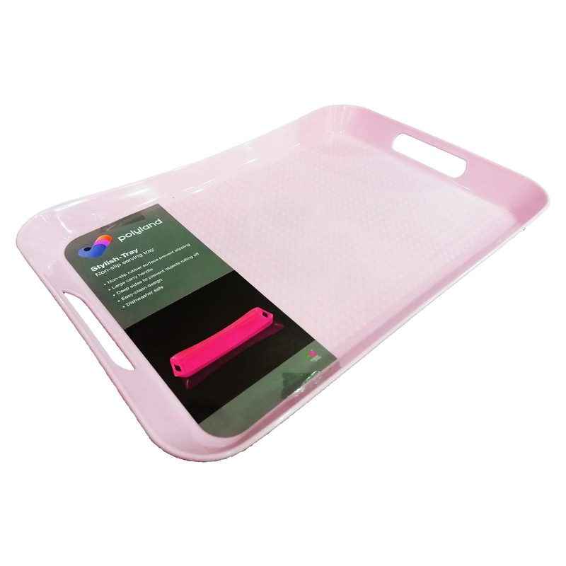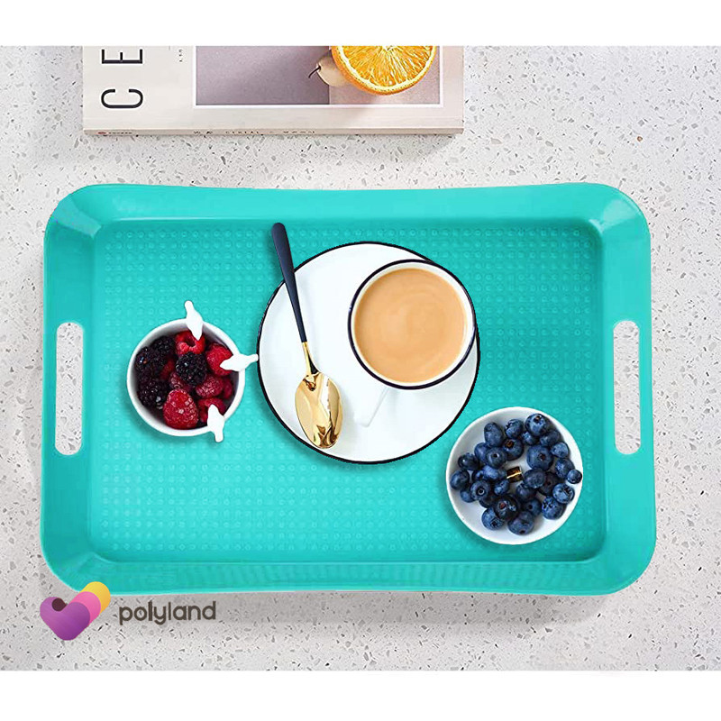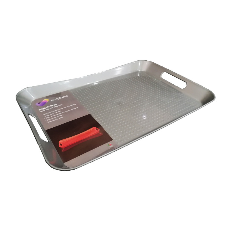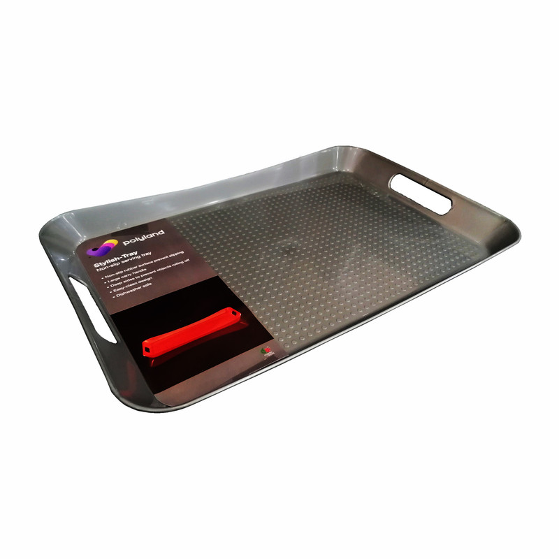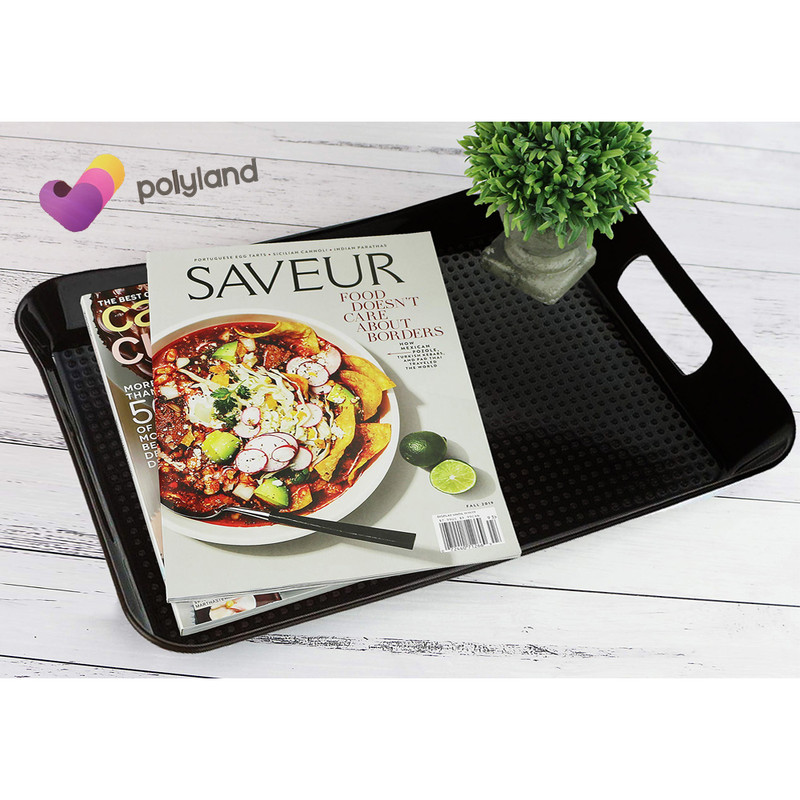 سینی برند پلی لند از جنس مرغوب، ظرافت بالا و زیبایی منحصر به فردی برخوردار است. ابعاد قسمت داخلی سینی : 43x29x3 سانتیمتر، ارتفاع لبه در بلندترین قسمت 4 سانتیمتر ارتفاع لبه در کوتاهترین قسمت 3 سانتیمتر است. طراحی بدنه های کناری به شکل دسته برای راحتی حمل، طراحی کف سینی بصورت نقطه ای برای جلوگیری از لغزندگی می باشد. جهت خرید حتما به سایز محصول دقت کنید. این سینی در سه سایز تولید شده است که این کالا (با کد PL02) سایز متوسط می باشد.
