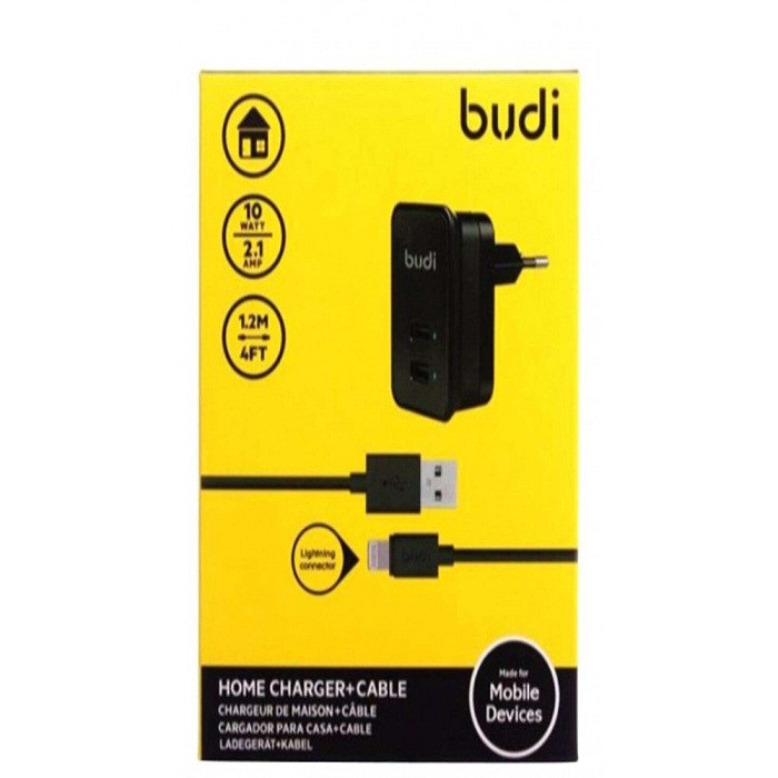 شارژر دیواری بودی مدل M8J053E با دو خروجی 2.1 آمپر و کابل فست 1.2 متری لایتنینگ همراه آن توانایی شارژ محصولات اندروید و آیفون موجود در بازار تا سال 2019 را دارا میباشد .