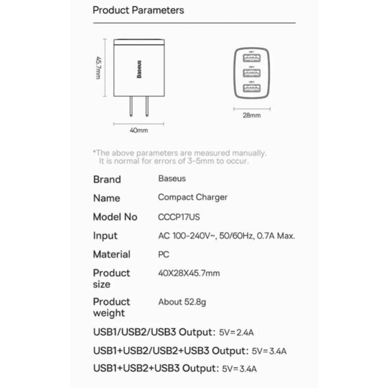 آداپتور بیسوس Baseus CCXJ020001 Compact Charger 3U EU توان 17 وات :