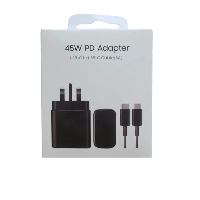 شارژر سوپر فست 45 وات مدل Travel Adapter Super Fast 45W Type-C (EP-TA845). این محصول ساخت ویتنام میباشد. شارژر دیواری(EP-TA845) محصول شرکت سامسونگ است. این شارژر دیواری دارای فناوری PD 3.0 است که با استفاده از آن می توانید دستگاه خود را با سرعت بیشتر و با توان 45 وات شارژ کنید. شدت جریان خروجی این شارژر برابر با 5 آمپر است که می توان از آن برای شارژ کردن تبلت هم استفاده کنید. برای این شارژر از چیپ هوشمندی استفاده شده تا با اتصال دستگاه به صورت خودکار جریان مناسب را برای دستگاه تامین کند.سال ساخت این محصول 2023 است