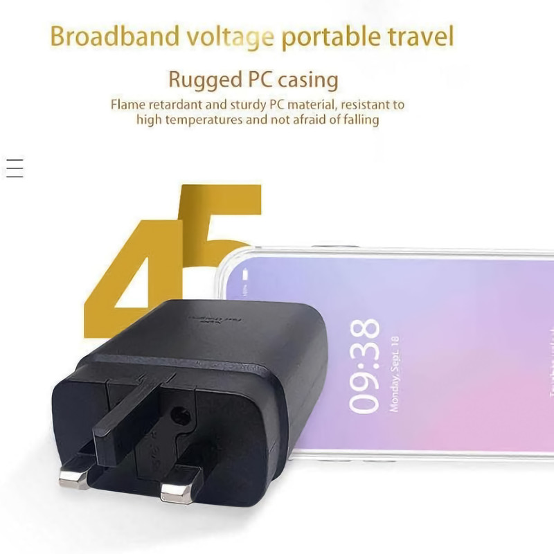شارژر دیواری مدل EP-TA845XBEGCN با توان خروجی 45 وات شارژر فوق العاده با کیفیت می باشد.این محصول ساخت کشور ویتنام میباشد و دارای فناوری PD 3.0 است که با استفاده از آن می توانید دستگاه خود را با سرعت بیشتر و با توان 45 وات شارژ کنید. شدت جریان خروجی این شارژر 5 آمپر می باشد که می توان از آن برای شارژ کردن تبلت هم استفاده کنید. برای این شارژر از چیپ هوشمندی استفاده شده تا با اتصال دستگاه به صورت خودکار جریان مناسب را برای دستگاه تامین کند. درگاه خروجی این محصول هم از نوع USB-C است. پیشنهاد می شود تا برای استفاده بهینه از حداکثر ظرفیت این دستگاه منحصر به فرد از کابل Type-C با کیفیت استفاده نمایید. شارژر EP-TA845XBEGCN سایر محصولات و موبایل های سری 2019 به بالا و گوشی هایی که توانایی شارژ سوپرفست را دارند پشتیبانی می کند.