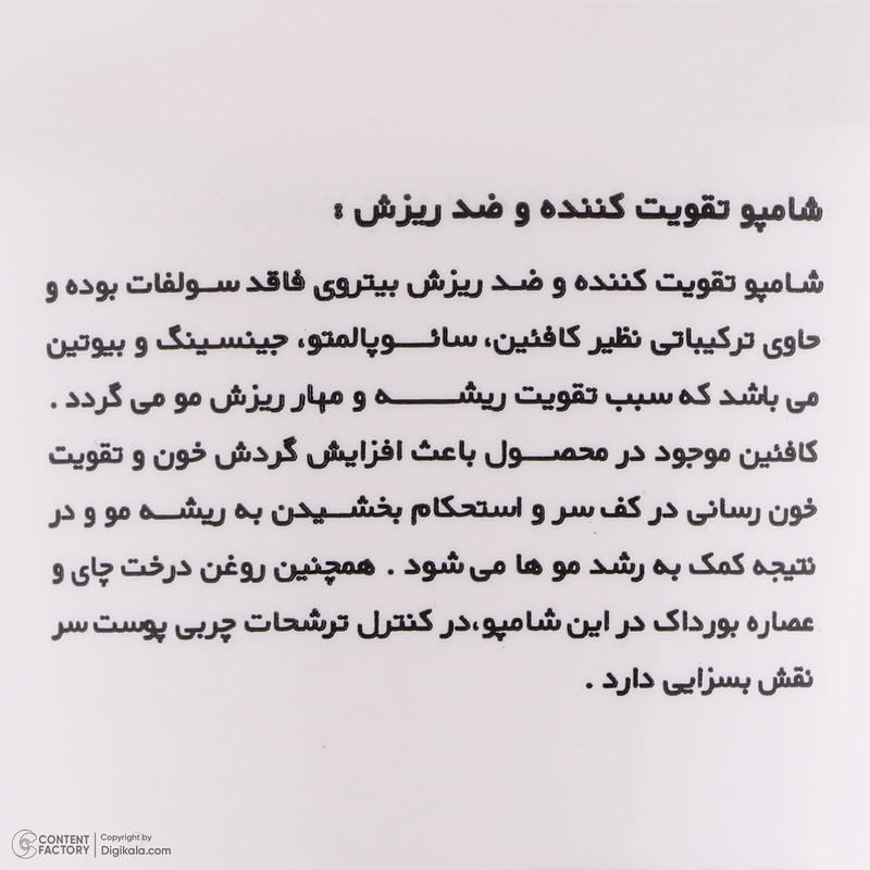 | کاربرد شامپو | تقویت کننده و ضد ریزش مو |