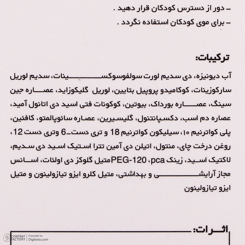 | سایر مشخصات | این محصول فاقد سولفات است. |
