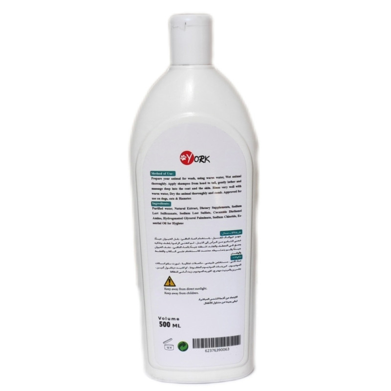 شامپوی روزانه برند یورک به دلیل فرمولاسیون قوی دارای خواص پاک کنندگی بالا برای سگ و گربه میباشد.