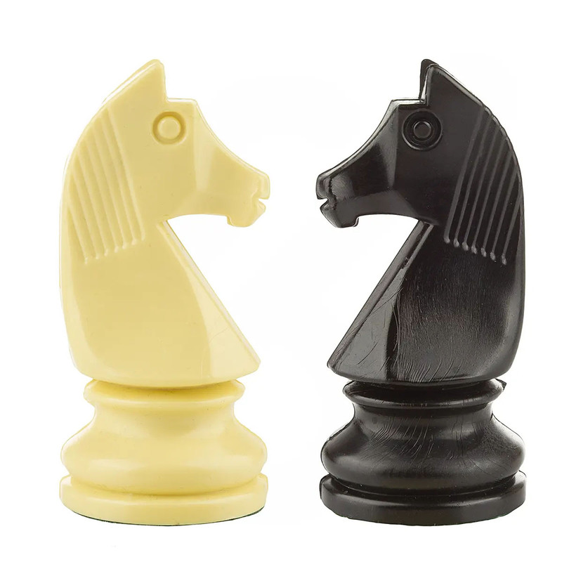 16 مهره ی سیاه و 16 مهره ی سفید این شطرنج از جنس پلاستیک فشرده بسیار مقاوم و بادوام می باشد. مهره های آن بسیار خوش دست و جذاب طراحی شده اند. به منظور جلوگیری از سقوط مهره ها و ایجاد پایداری بیشتر، مهره ها به صورت توپر ساخته شده اند و سطح زیر مهره ها به جهت اصطکاک بیشتر از مخمل پوشانده شده است.