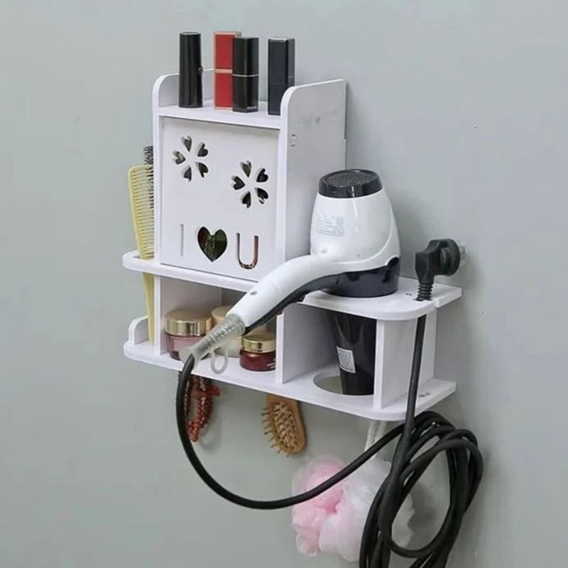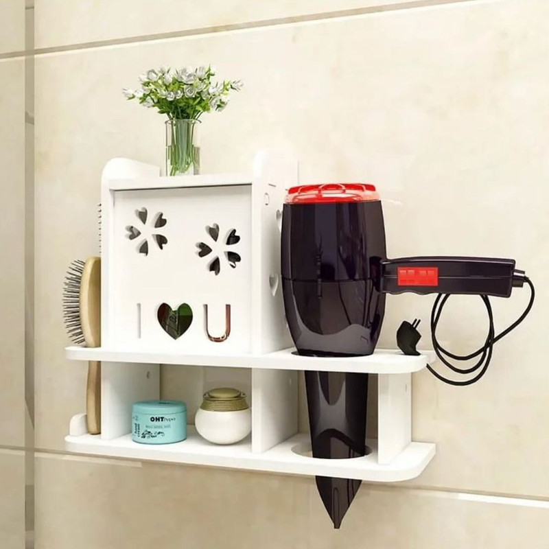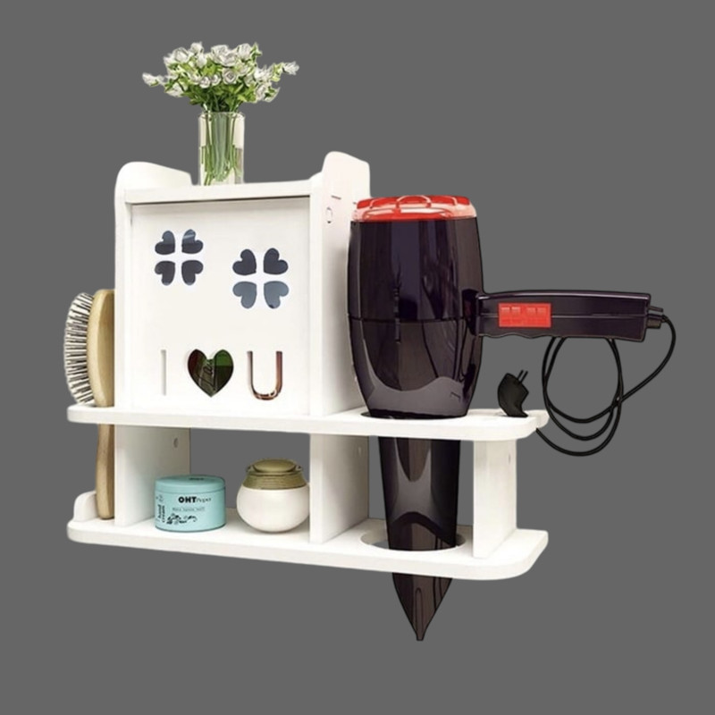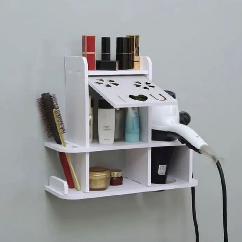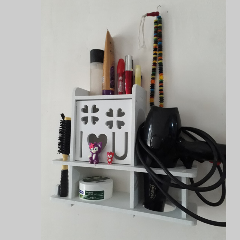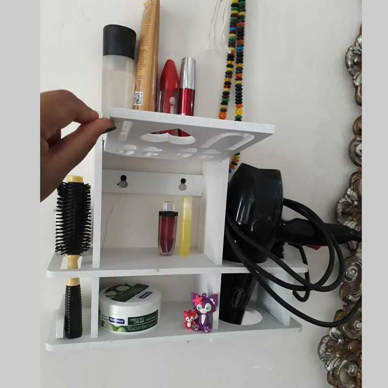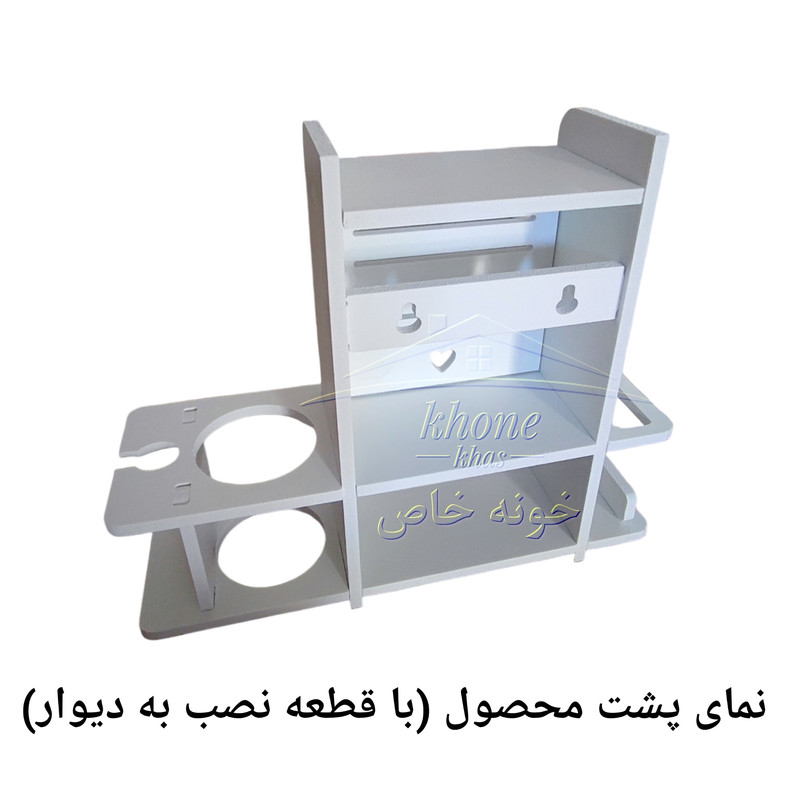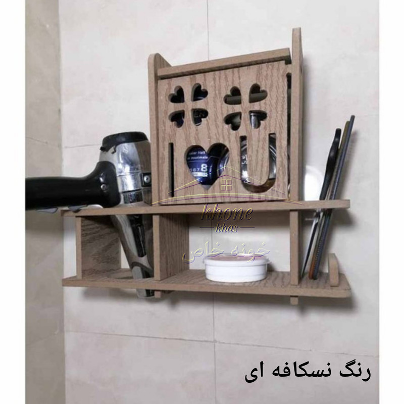 شلف نگهدارنده سشوار خونه خاص از جنس پی وی سی مقاوم و با کیفیت تولید شده که در برابر رطوبت و آب کاملاً مقاوم می باشد ، به طوری که در صورت نیاز می توانید از آن درون مکان هایی با رطوبت بالا نظیر حمام و سرویس بهداشتی استفاده کنید و یا اینکه در صورت نیاز به سادگی آن را بشویید . شلف سشوار دارای یک استند برای نگهداری سشوار در قسمت بیرونی می باشد که به طور کامل آن را پوشش داده و نگه می دارد . در کنار استند که شامل دو سوراخ به قطر 8 سانتی متر با فاصله از یکدیگر می باشند یک حلقه برای نگهداری سیم سشوار تعبیه شده که با استفاده از آن می توانید دوشاخ برق سشوار را مهار و از آویزان بودن و یا حتی آسیب رسیدن به آن جلوگیری کنید . فضای کنار نگهدارنده سشوار شامل دو محفظه درب دار و بدون درب در دو طبقه می باشد که از آنها برای نگهداری وسایل و لوازم بهداشتی در ابعاد کوچک می توانید استفاده نمایید . در کنار محفظه ها نیز یک استند برای نگهداری برس در حالت ایستاده تعبیه شده است. رنگ سفید این محصول جنس پی وی سی و قابل شستشو است و سایر رنگها (نسکافه ای، قهوه ای و ...) از جنس mdf بوده، قابل شستشو نمی باشد ولی با توجه به رنگ دکور شما می تواند زیبا و در خور توجه باشد. این محصول طراحی و تولید خونه خاص بوده و فقط با کارتن برند خونه خاص ارسال می شود